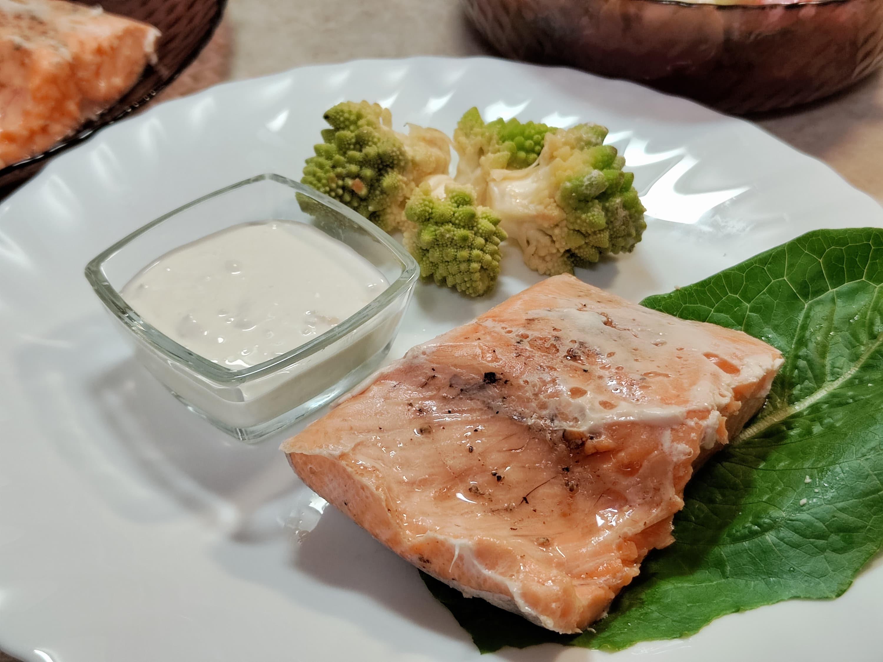Книга рецептов рекомендует варить лососевые породы на температуре от 52 °C. На столь высокую кухню мы не решились и потому готовили при 65 °C в течение 20 минут.