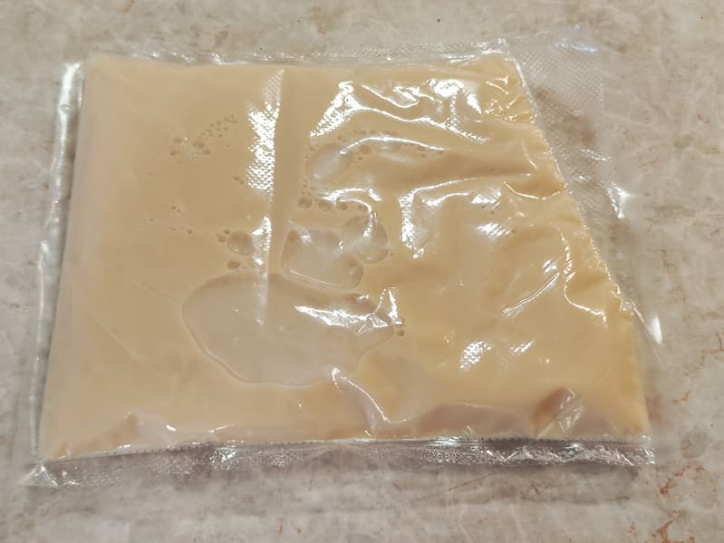 Залили молоко в вакуумный пакет, всыпали туда же остальные ингредиенты. Аккуратно завакуумировали, хорошо встряхнули содержимое и уложили в кастрюлю на 13 часов при 85 °C.