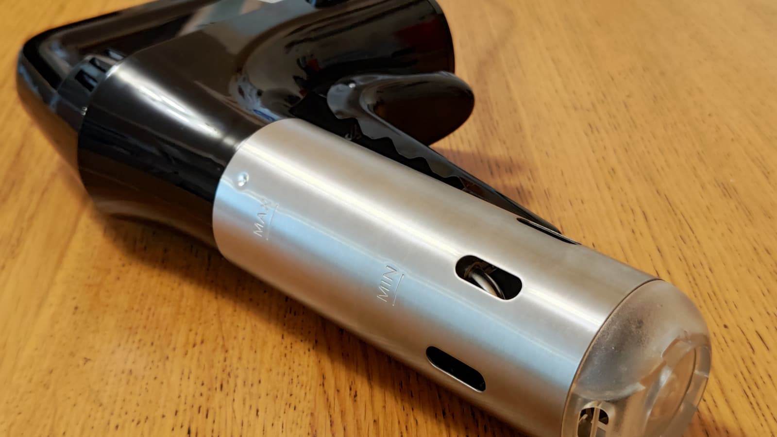 Ручка удобно располагается в ладони, она прямая, что оставляет прибору мало шансов выскользнуть из цепких рук кулинара. Ниже находится массивная управляющая часть прибора, видимо, его «мозг». На скошенном торце корпуса размещена панель управления.