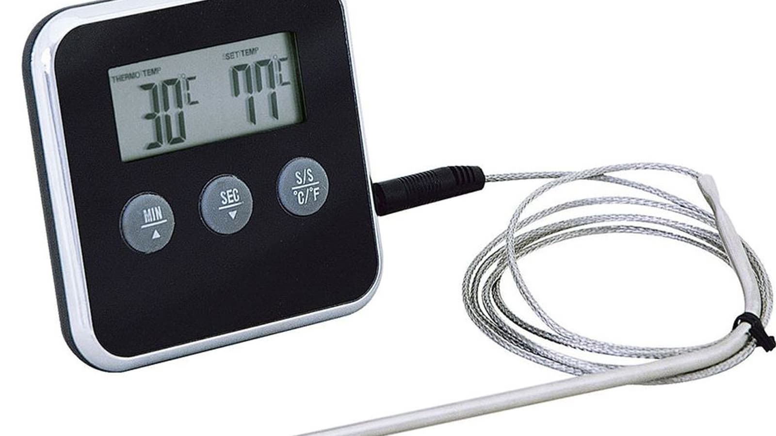 Решением этой проблемы может стать покупка электронного термометра с выносным щупом. У таких приборов щуп подключается к устройству с помощью специального жаропрочного кабеля, который можно протянуть внутрь духовки. Электронный блок при этом останется снаружи. Такой термометр отлично будет работать и в связке с грилем, барбекю или коптильней. Правда, у выносного щупа тоже есть свои ограничения (как правило, порядка +250 °C), и измерять слишком высокие температуры с его помощью не получится.