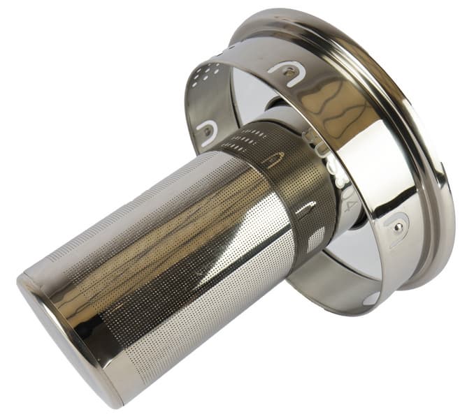 К основанию крышки крепится съемный фильтр для заваривания чая. Он также сделан из нержавеющей стали и покрыт микроперфорацией по всей высоте. Фильтр удерживается с помощью трех выступов в основании крышки — устанавливается плотно и надежно, а снимается без особенного усилия.