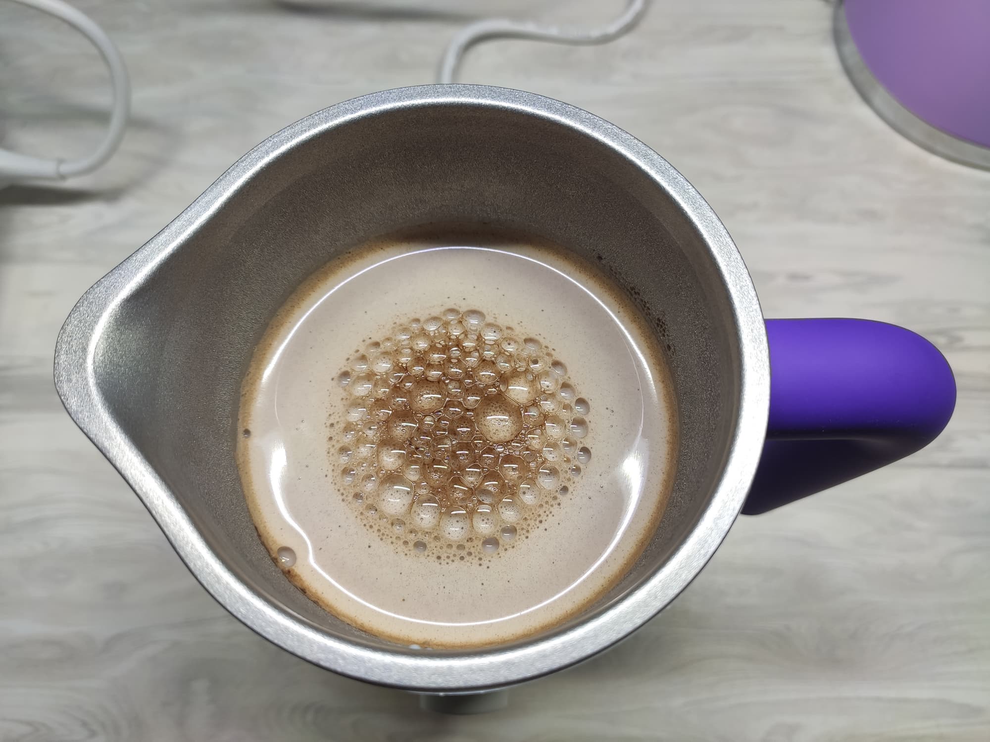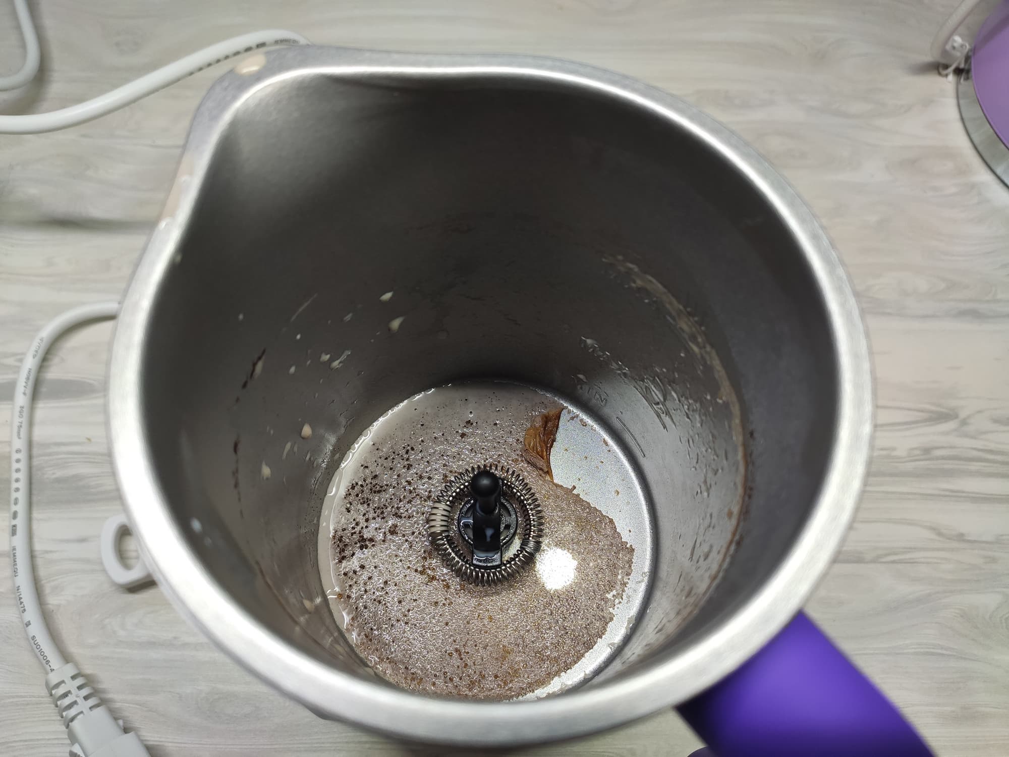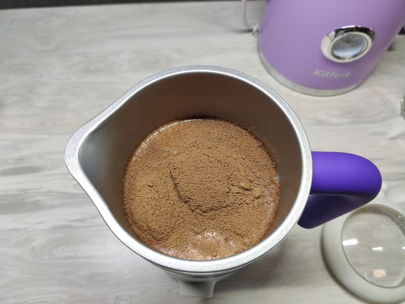 Поначалу в капучинаторе мы наблюдали крупные кусочки слипшегося какао.