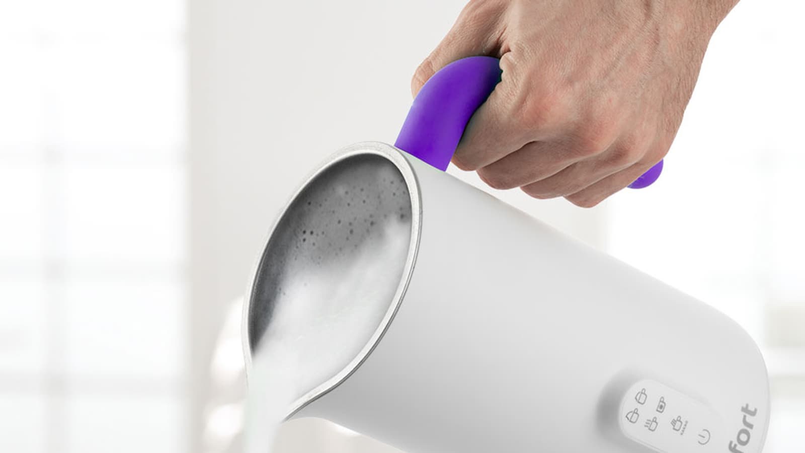 Через 2 минуты и 30 секунд мы получили идеальную густую и равномерно взбитую молочную пену.