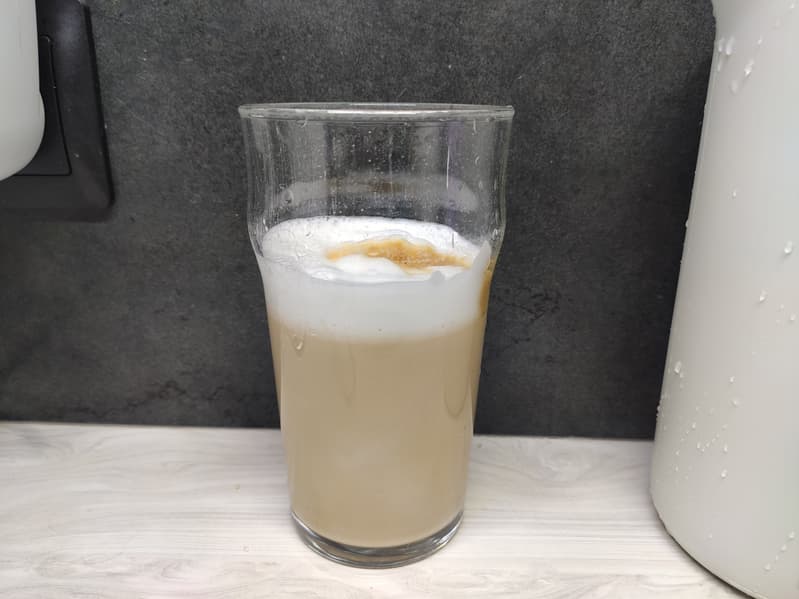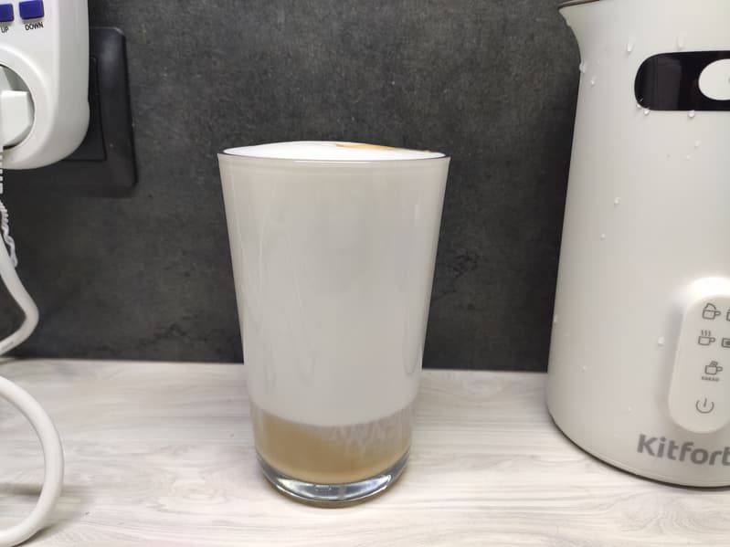 Объем пены оказался невелик, а большую часть емкости занимало подогретое и едва вспененное молоко.