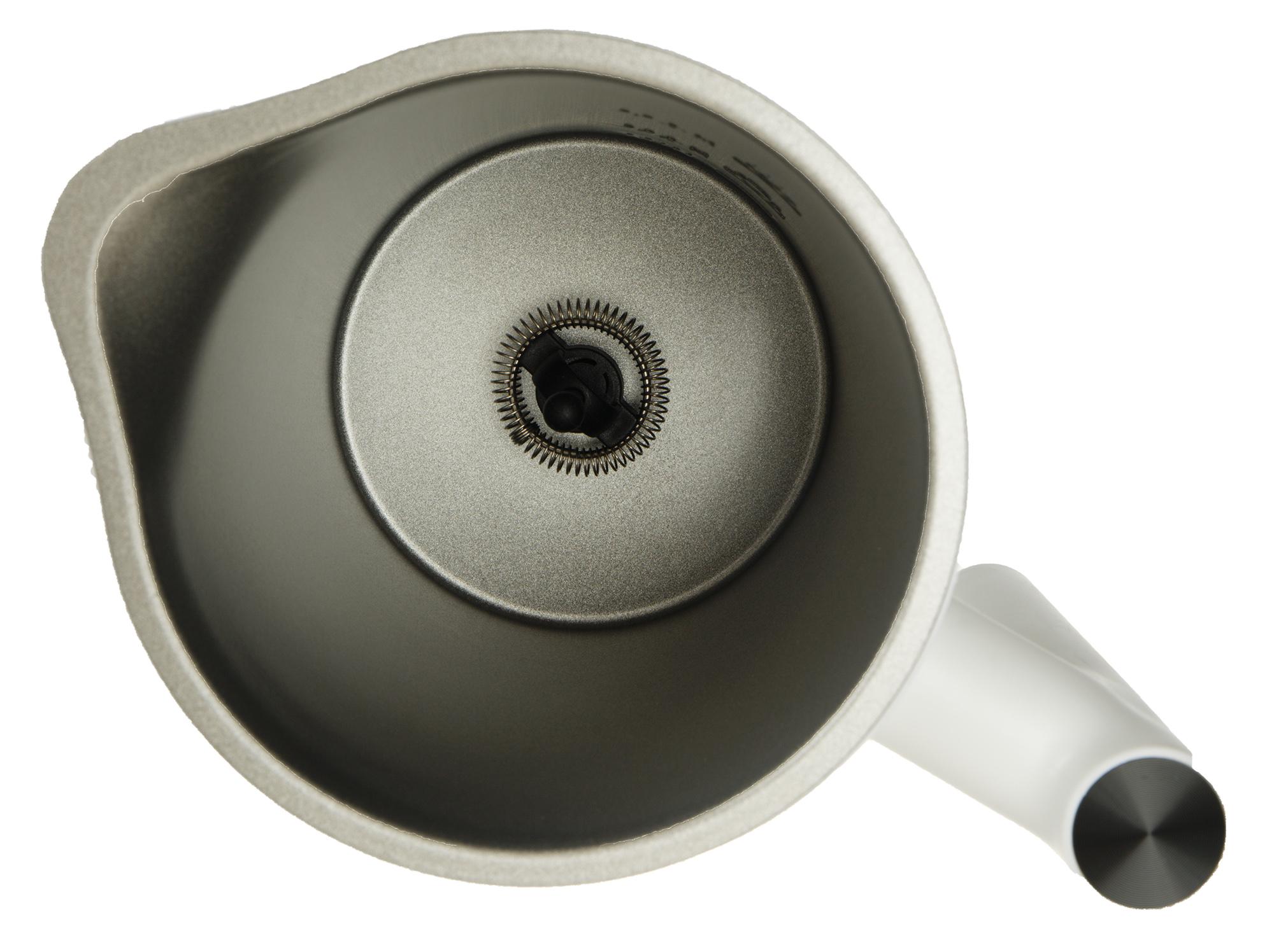 Решение с подсоединяемым шнуром питания мы можем признать как удобным, так и нет. С одной стороны, такой способ подключения прибора позволяет отказаться от «базы» (как у обычных электрических чайников). С другой — не будем забывать, что промывать капучинатор придется после каждого использования, а следовательно, после каждого приготовления молочной пены придется выдергивать шнур, а по завершении очистки прибора — вставлять его обратно.