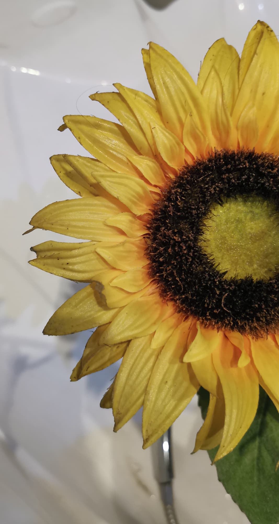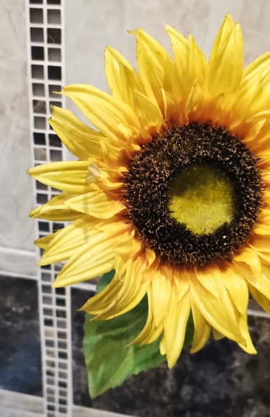 Мы решили испытать отпариватель на искусственных подсолнухах, которые долго пылились в кухне на шкафчиках.