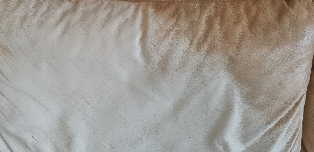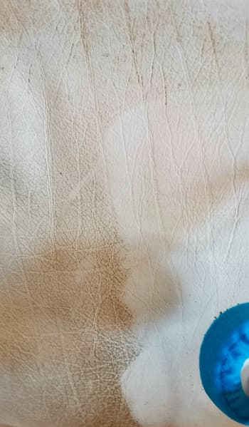 Грязь снималась очень хорошо и достаточно быстро, кожа впоследствии не сморщилась. Единственная проблема — что вместе с грязью мы смыли и краску. Вместо бежевого дивана у нас получился молочный.