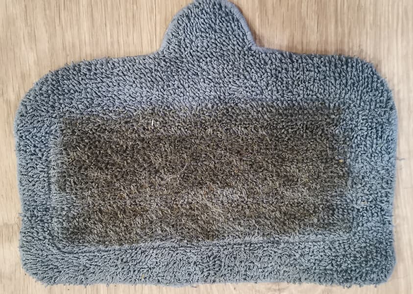 Так как данный ковер имеет короткий ворс, тряпка только касалась поверхности, но смогла собрать с вымываемой области шерсть, некоторое количество грязи и песка. Что можно сказать уверенно — что Kitfort KT-1016 хорошо продезинфицировал паром ковер, что немаловажно, если в семье есть аллергики. Грязь из глубины ворса, естественно, никуда не делась. На фото левая половина — участок, отпаренный Kitfort KT-1016 после просушки, правая половина — нечищенный.