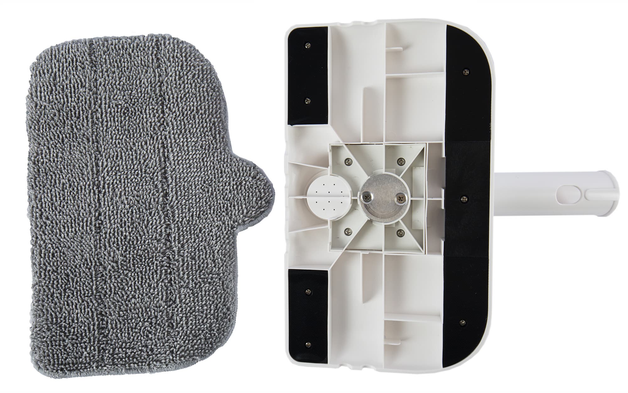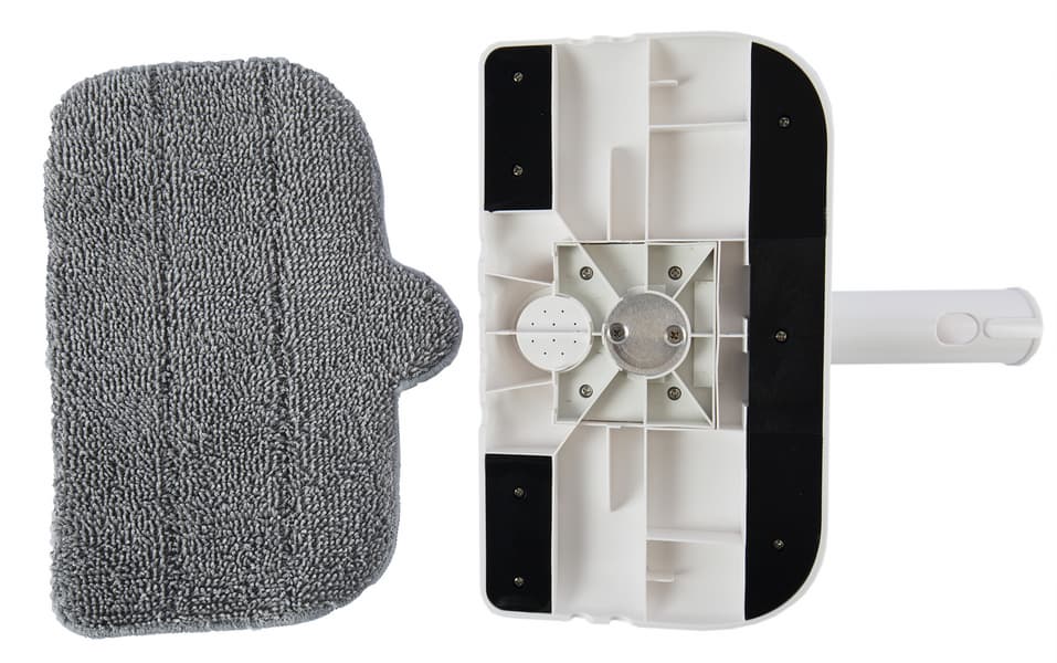 Специальная тряпка крепится к насадке с помощью липучек по периметру, что практически исключает задирание углов. Тряпка сделана из микрофибры на толстой впитывающей подложке, поэтому она не только хорошо очищает, но и впитывает много воды.