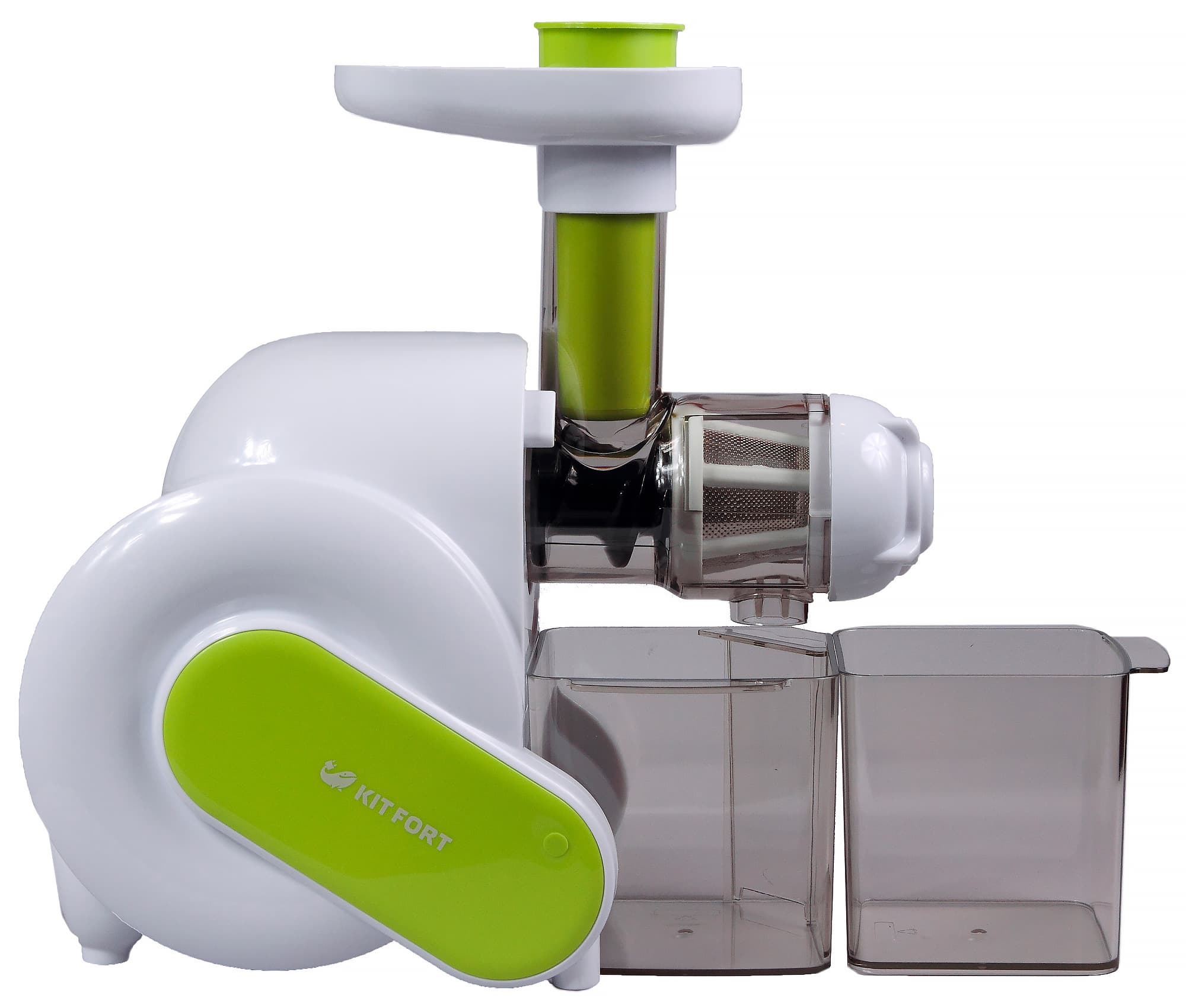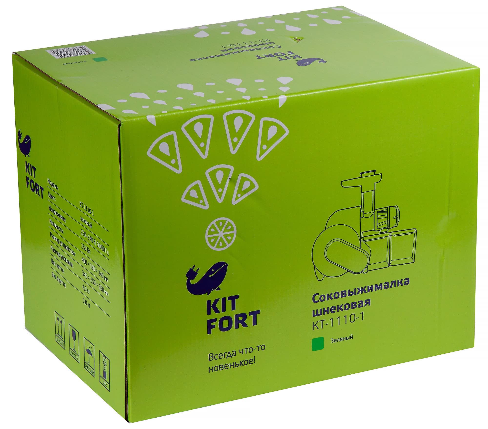 Низкоскоростная шнековая соковыжималка — это настолько обыкновенный обитатель нашей кухни, что сказать о ней что-то новое и хотелось бы, да не получится. Тем более, что одна горизонтальная шнековыжималка Kitfort побывала в наших руках совсем недавно и оставила весьма приятное впечатление. Соковыжималка Kitfort KT-1110 симпатично и чуть нестандартно выглядит, остальные ее характеристики мы узнаем в ходе тестирования.