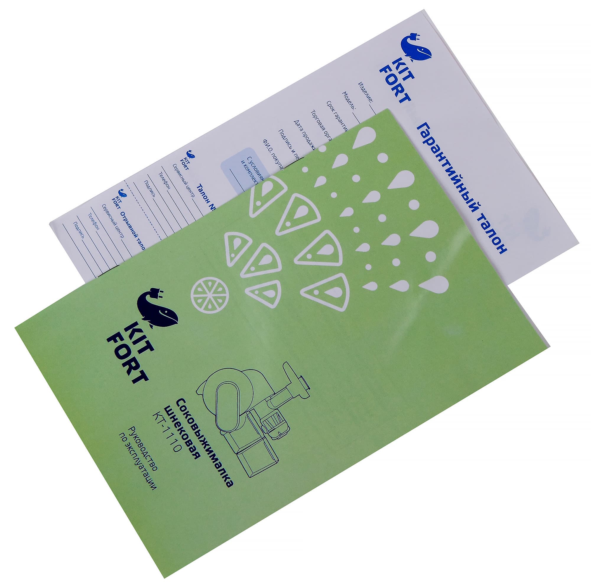 Зелененькая брошюрка с фирменным китенком на обложке — руководство по эксплуатации. Она дает полное представление, как обращаться с прибором, собирать и разбирать его, как за ним ухаживать и как подготовить сырье к отжиму.