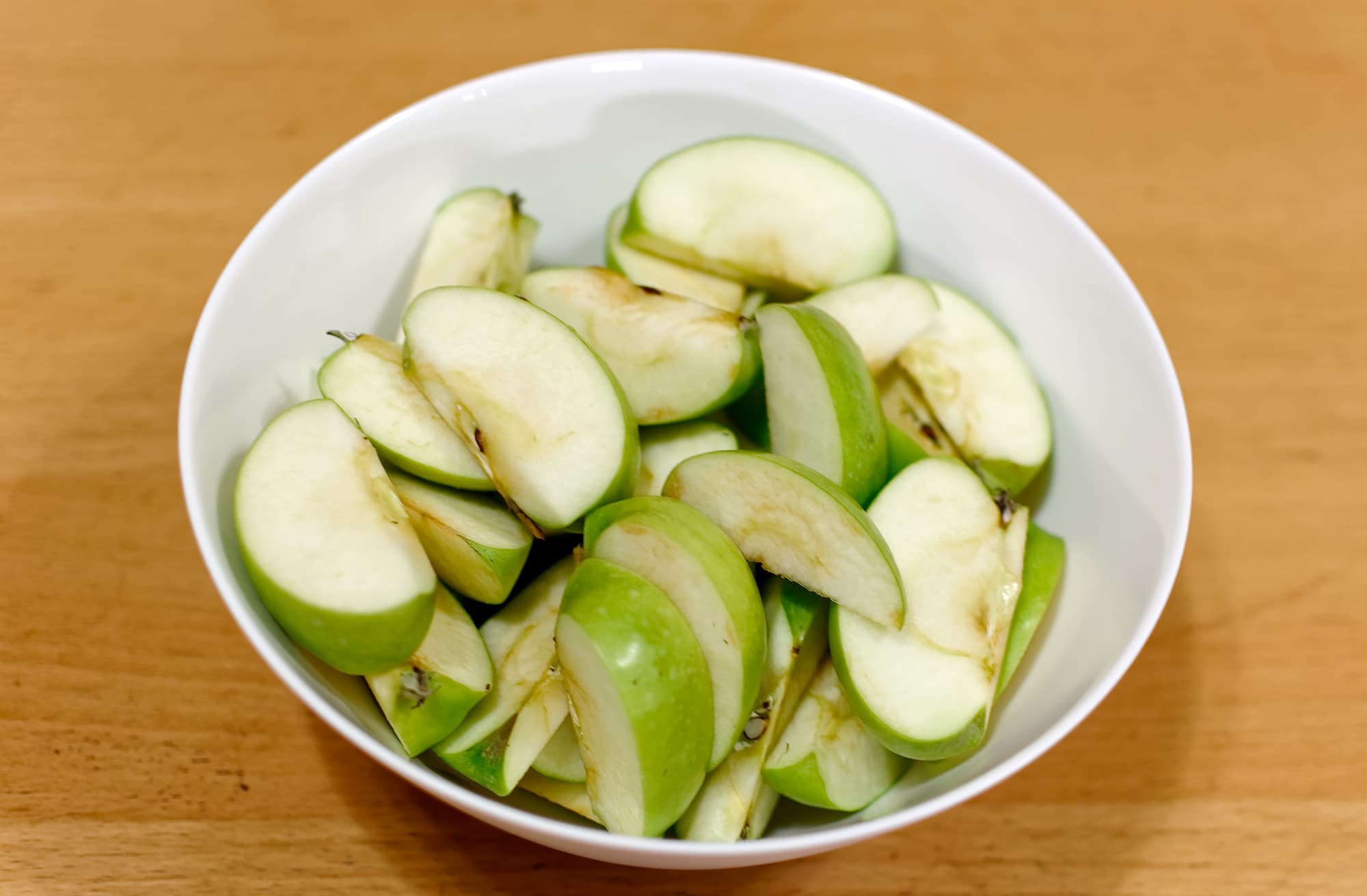 Процесс подготовки яблок заключался в разрезании на те же 8 долек. Кожу не очищали, сердцевину не удаляли. Килограмм сырья выглядел так.
