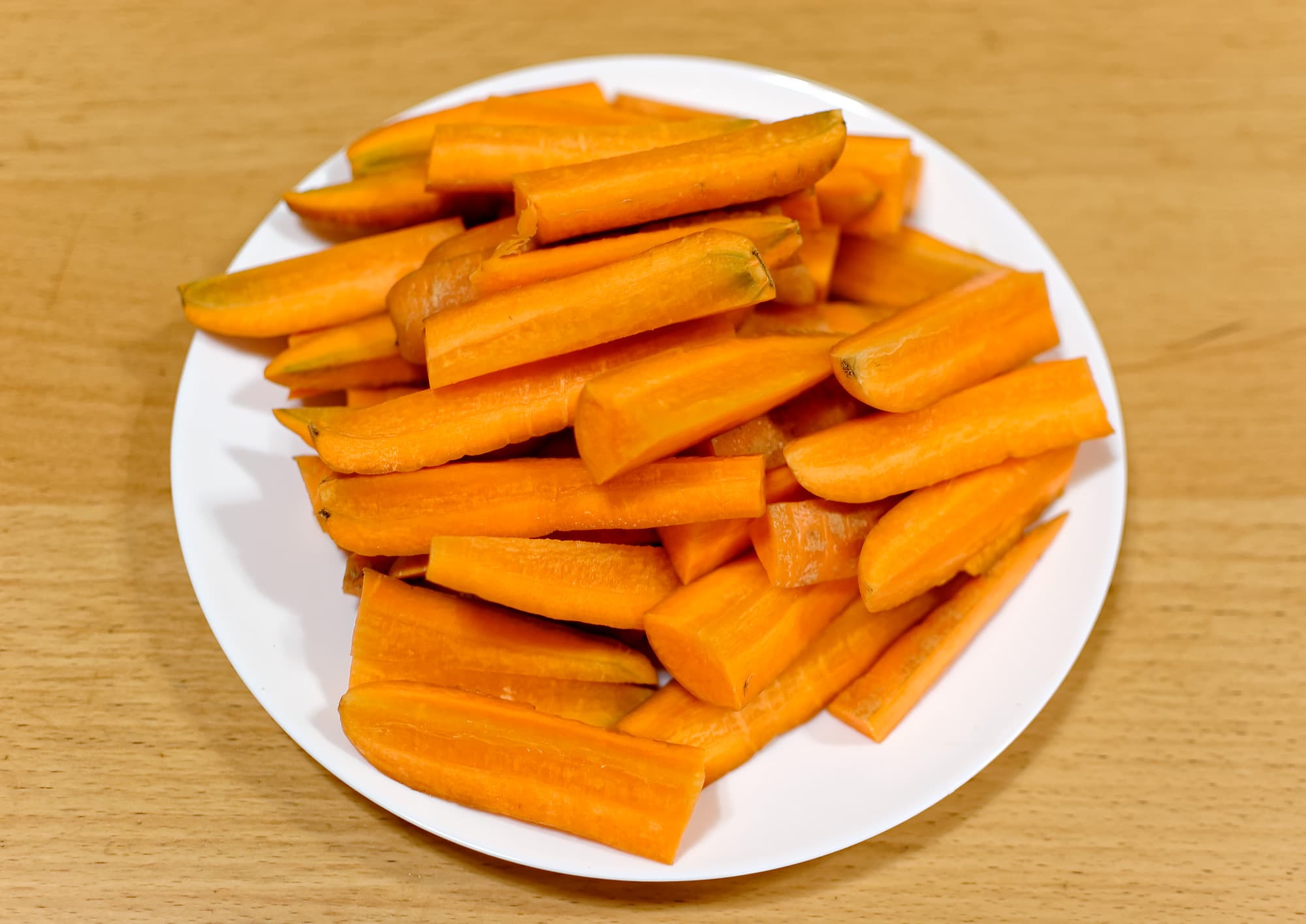 Морковь была мытая, поэтому снаружи шкурку не чистили, просто обмыли еще раз. Порезали вдоль на 4 части и поперек пополам.