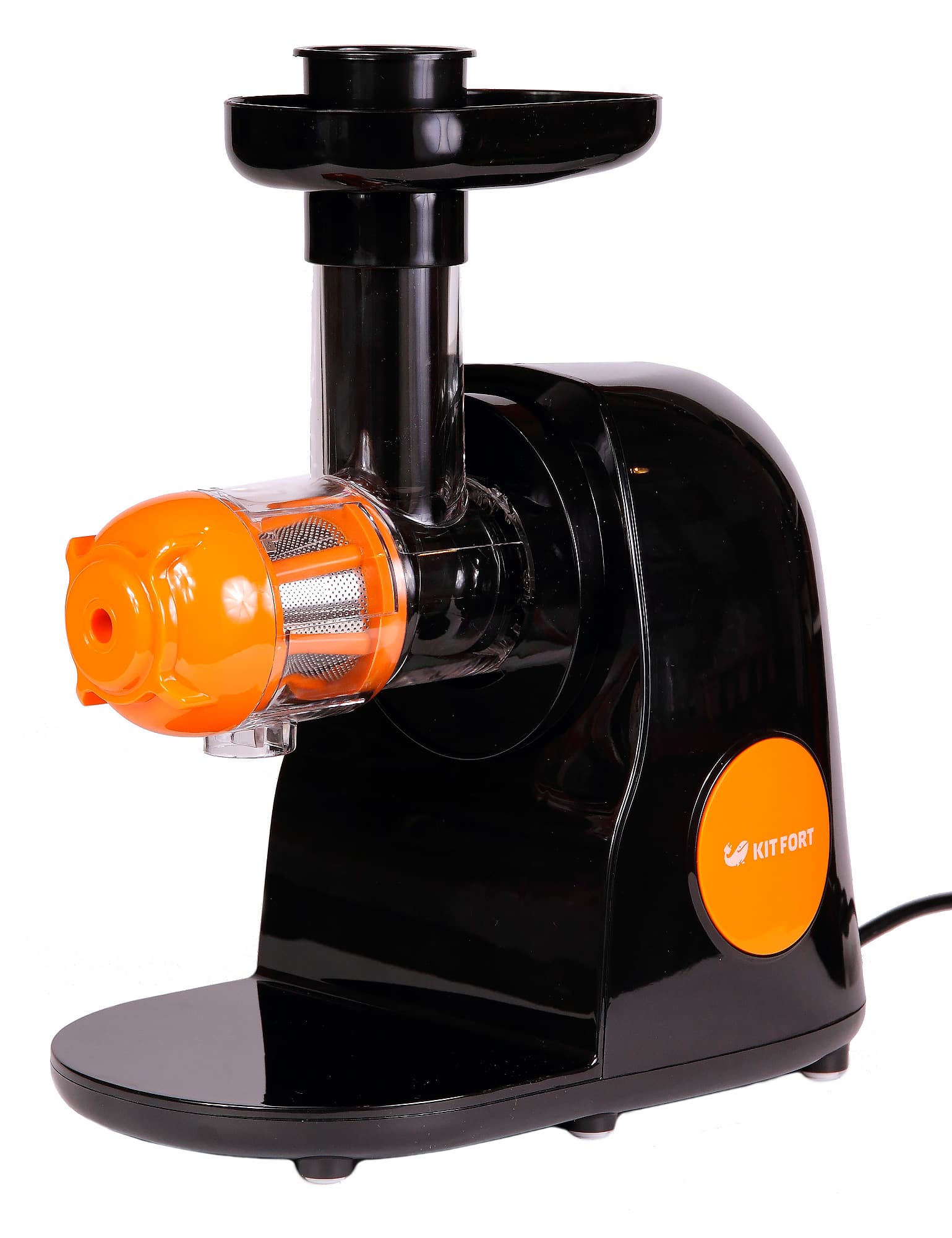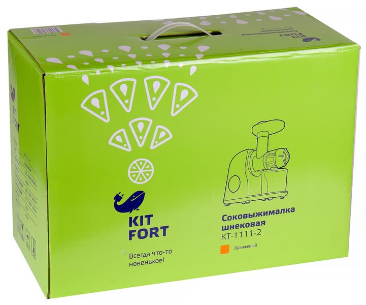 Kitfort KT-1111 — симпатичная небольшая соковыжималка, отлично справляющаяся с задачей отжима соков из сочных фруктов. Чуть похуже у нее получается работать с проблемным, твердым и более сухим сырьем — например, с овощами.
