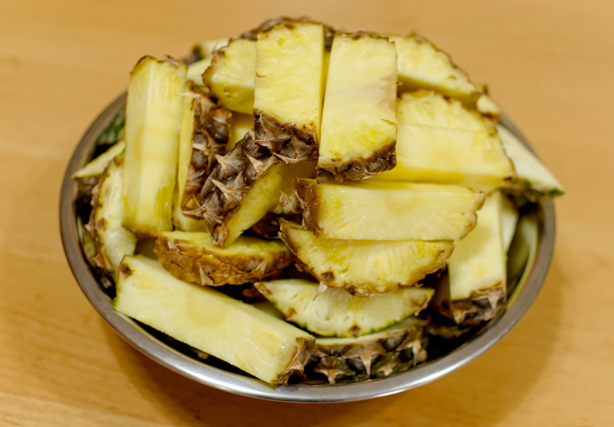 Всего получилось порядка 2 литров густого и сладкого сока из спелых ананасов.