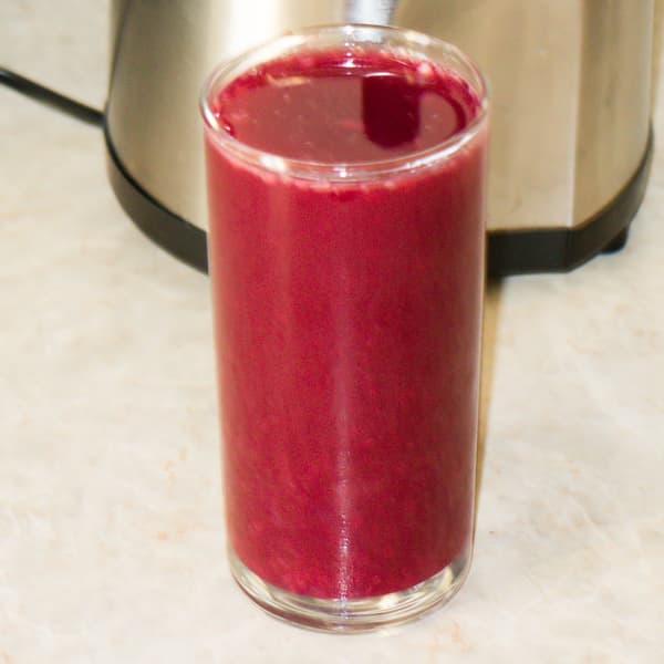 При взгляде на фотографию кажется, что сока совсем мало. Нам тоже так казалось, но ровно до тех пор, пока мы не начали разбирать соковыжималку. Тогда-то и было обнаружено, что основное количество сока скопилось в лотке. Косточка засорила выходное отверстие, которое мы легко прочистили при помощи деревянной шпажки. В итоге было получено 278 г сока. В нем встретилось несколько косточек. Вкус сока полный и чистый, без горечи кожуры или косточек зерен.