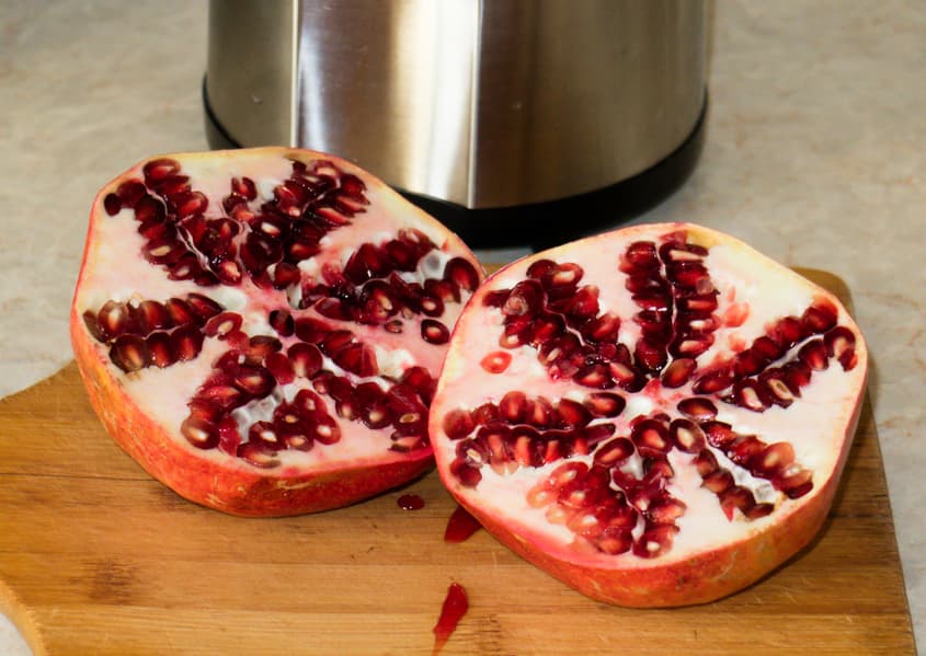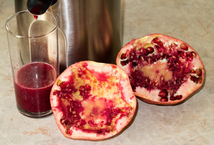 Один фрукт весом в 556 г разрезали напополам. Соковыжималка хорошо выделяла сок из центральной части граната по диаметру насадки. При попытке надавить на край граната, чтобы отжать сок из зерен, находящихся вне зоны воздействия конуса, некоторые зерна сдавливались и отдавали сок, а некоторые — отрывались и начинали елозить по решетке.