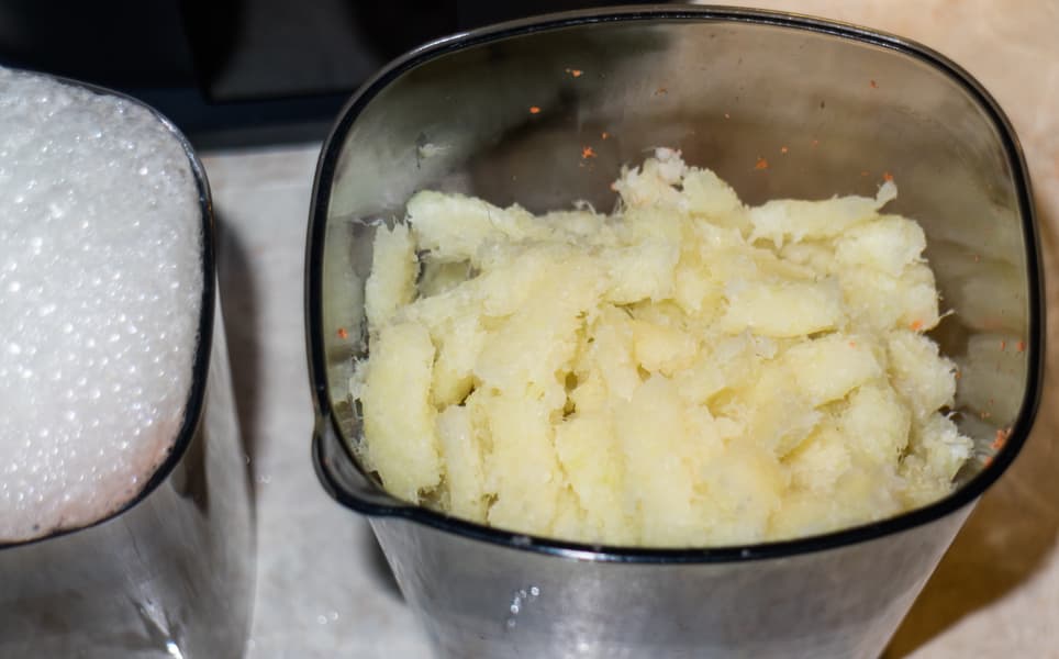 Сырье для переработки следует подготовить: удалить крупные косточки, очистить жесткую кожуру или шкуру, нарезать на кусочки подходящего размера. Мягкие фрукты и овощи допускается не нарезать, если они полностью проходят в загрузочную горловину. Волокнистые продукты (сельдерей, ананас, капусту) нужно нарезать на небольшие кусочки во избежание наматывания длинных волокон на шнек и засорения выходного отверстия для жмыха.
