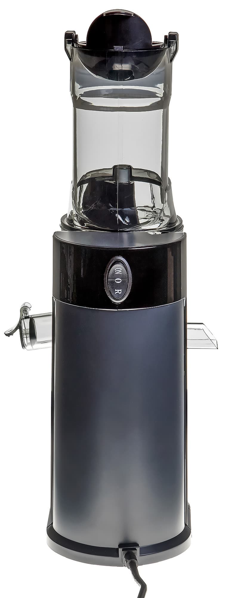 Ни в одном из тестов влага или жидкость из выжимной корзины не попала на моторный блок соковыжималки, основание и металлический вал всегда оставались сухими и чистыми. Толкателем мы почти не пользовались — небольшие кусочки фруктов и овощей попадали в рабочую зону, где, в большинстве случаев, немедленно подхватывались ребром шнека и уходили вниз.