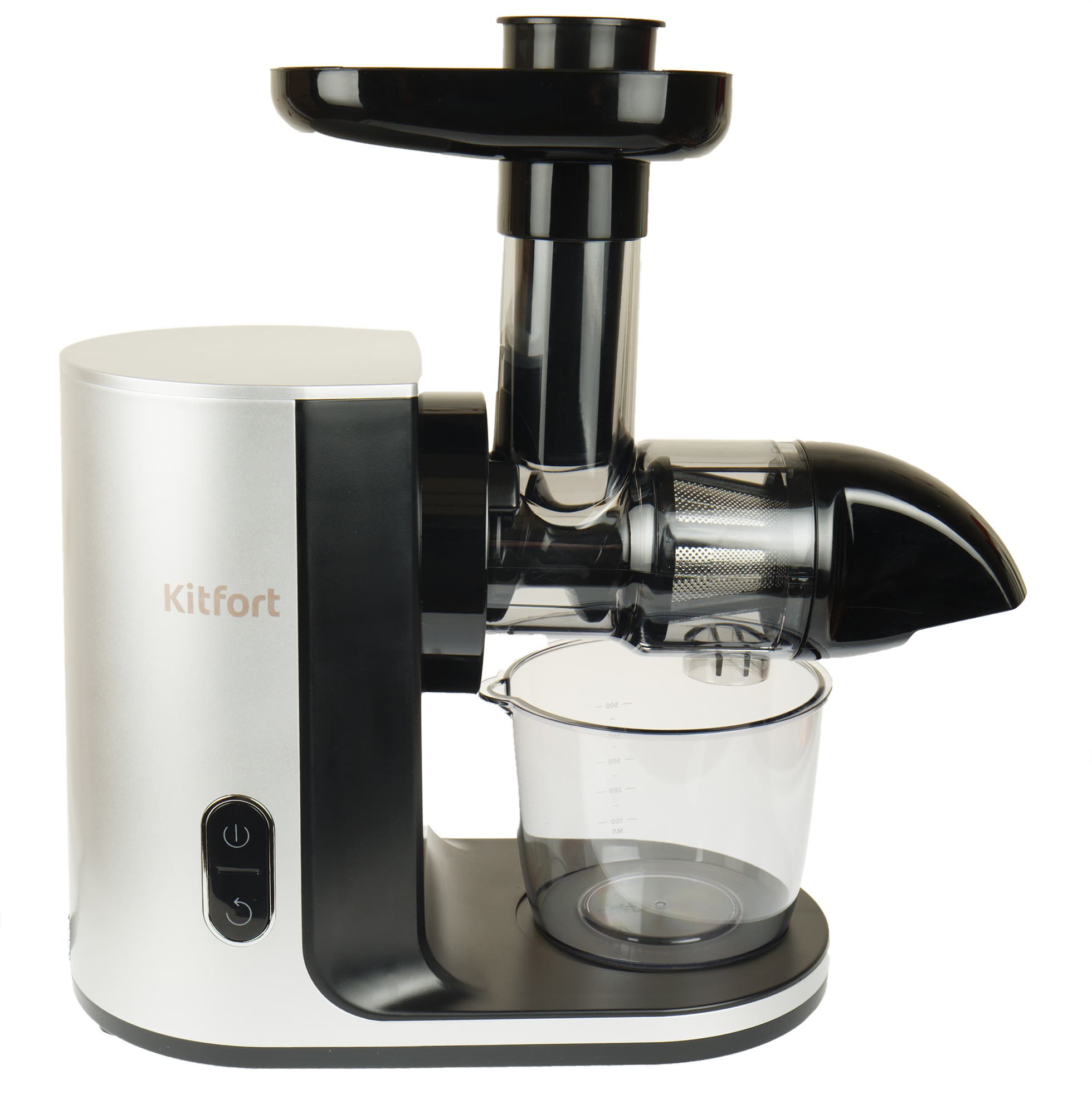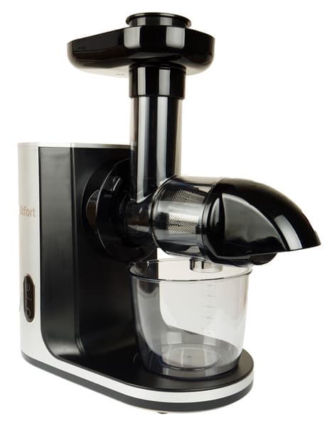 Шнековые соковыжималки методично отвоевывают место на рынке у классических центробежных благодаря более высокому качеству отжима сока. Kitfort KT-1125 с горизонтальным отжимом претендует на лидерство и среди себе подобных: на сайте производителя говорится, что она бережно отжимает максимально возможное количество сока из фруктов, овощей и зелени на низких оборотах, сохраняя все витамины, аминокислоты и минералы. По уверениям Kitfort, 85—115 об/мин — оптимальная скорость вращения шнека для холодного отжима. Количество полезных веществ в соке мы измерить не сможем, но его органолептические свойства и сам процесс отжима оценим.
