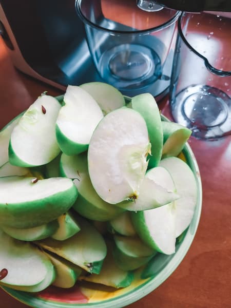 Яблоки мы нарезали на 8 долек каждое: четвертинки не помещались в загрузочное отверстие.