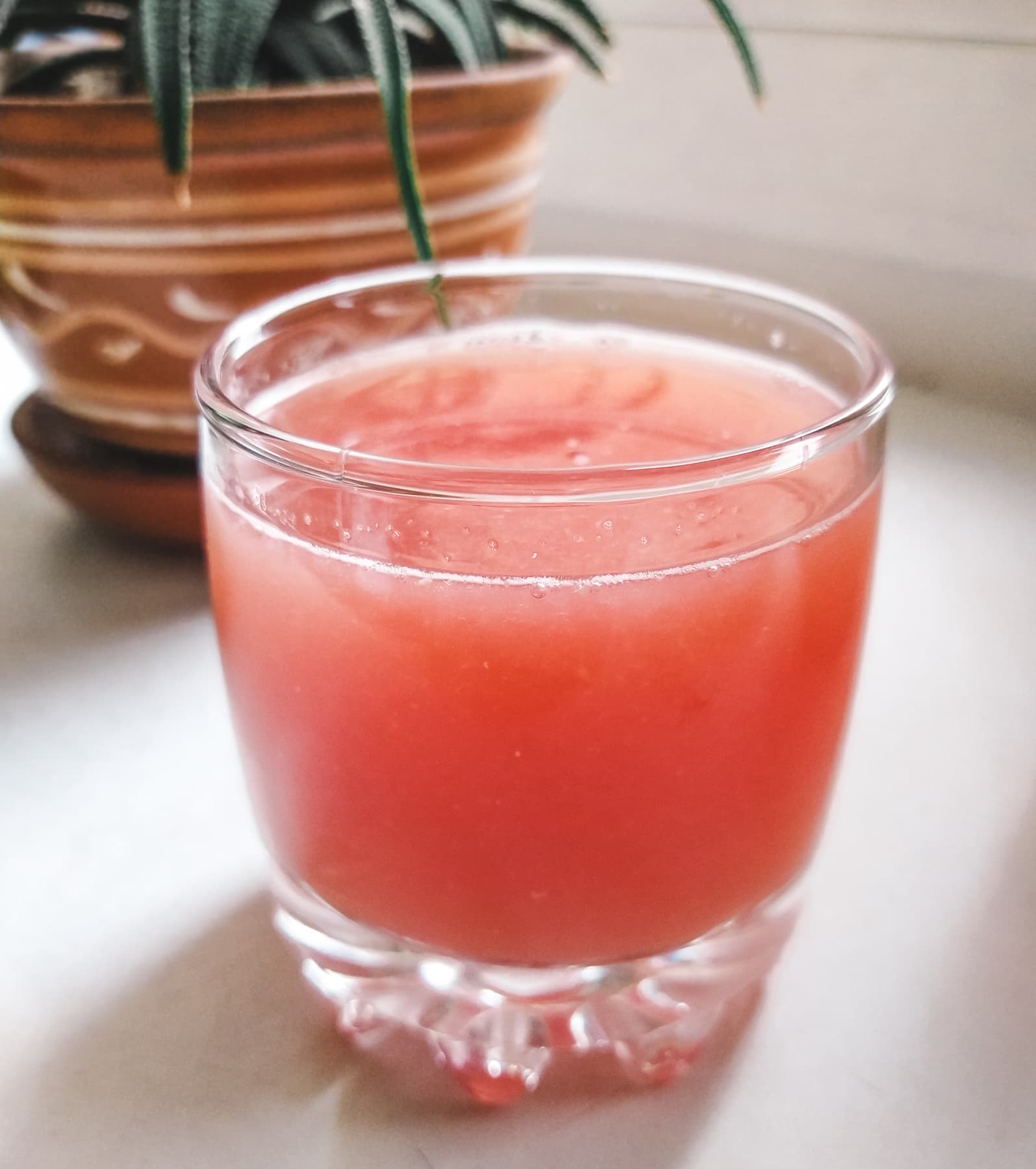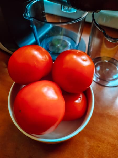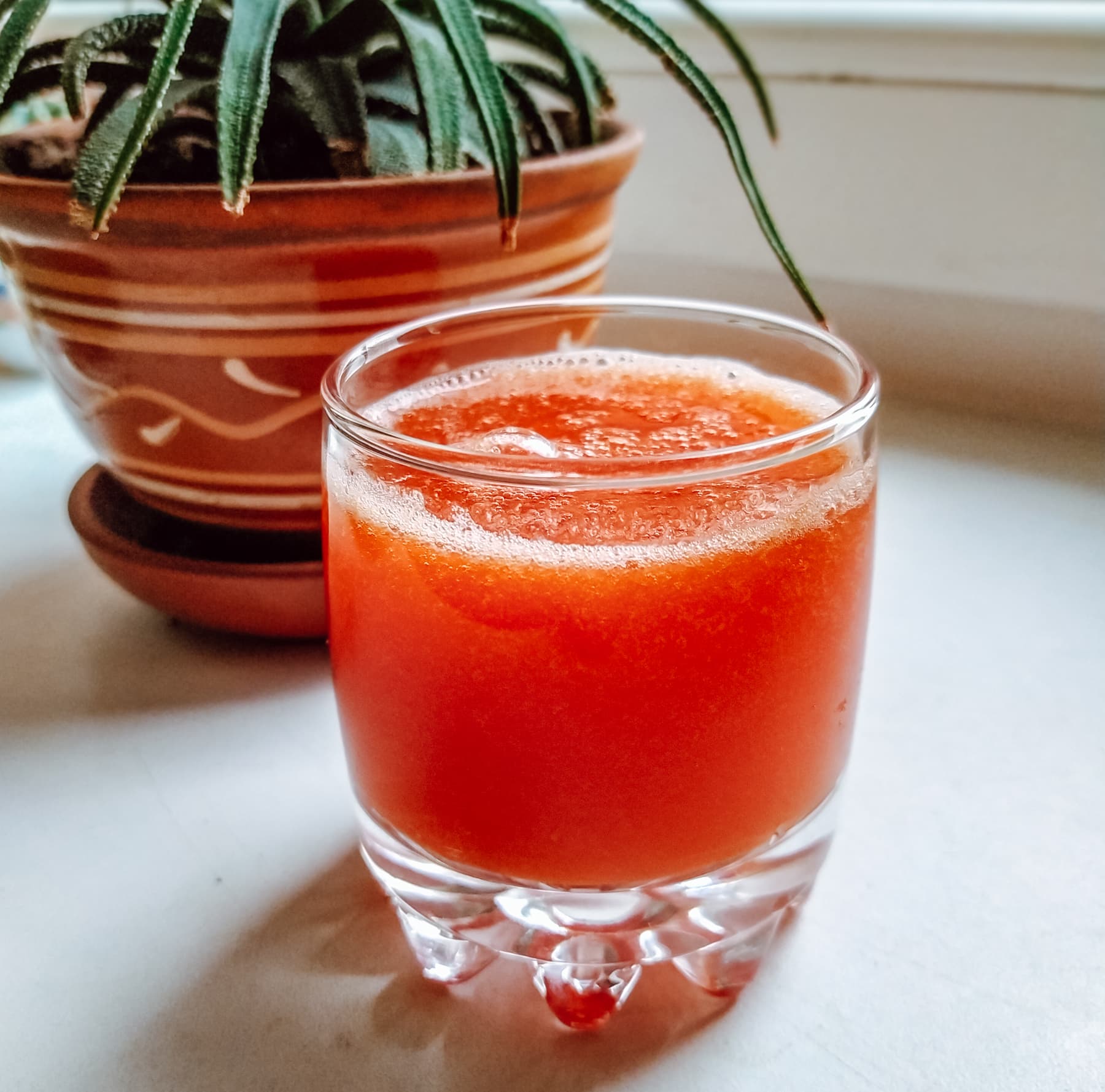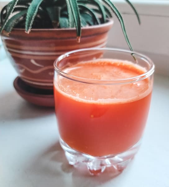 Сам сок с мякотью, но не густой. Вкус ярким не назвать, но таковы наши зимние помидоры.