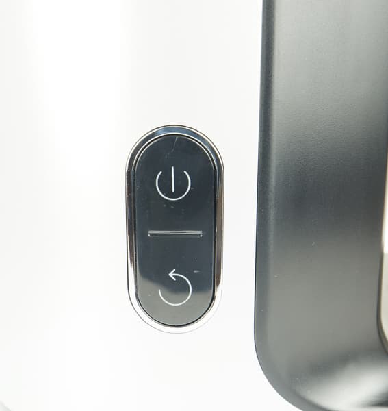 Панель управления представлена двумя кнопками, о назначении которых легко догадаться и без инструкции. Кнопка питания запускает и останавливает вращение шнека (скорость у Kitfort KT-1125 одна). Ниже — кнопка реверса. Она не фиксируется, так что для ликвидации затора в камере необходимо держать ее нажатой пару секунд. Включать реверс можно максимум на пять секунд и только после полной остановки шнека.