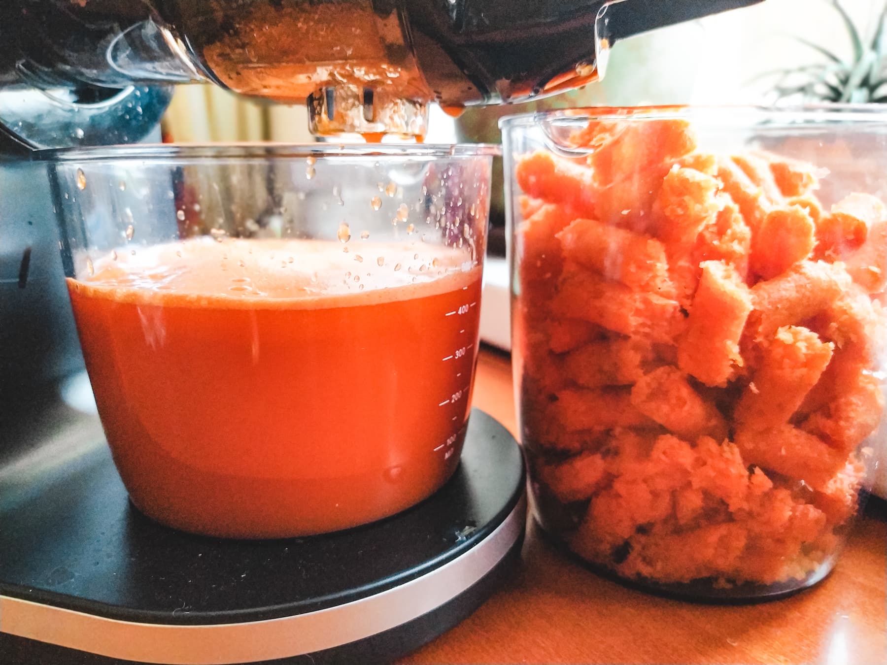 Сок из килограмма моркови Kitfort KT-1125 отжимала 2 минуты 50 секунд — вышло 472 грамма.