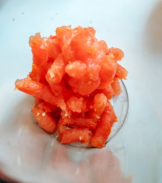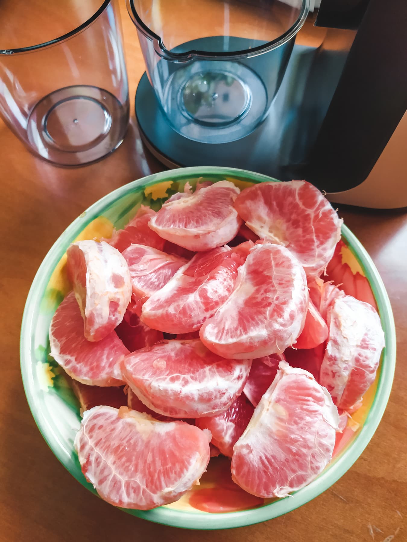 Грейпфрут очистили от кожуры и белых пленок, снова взвесили ровно килограмм. Разделили плоды на дольки.
