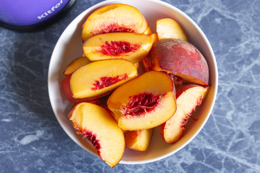 Ровно полкило сочных персиков средней степени мягкости мы разрезали на четвертинки. 1,5 минуты потребовалось прибору на превращение фруктов в густой ароматный сок в количестве 315 граммов.