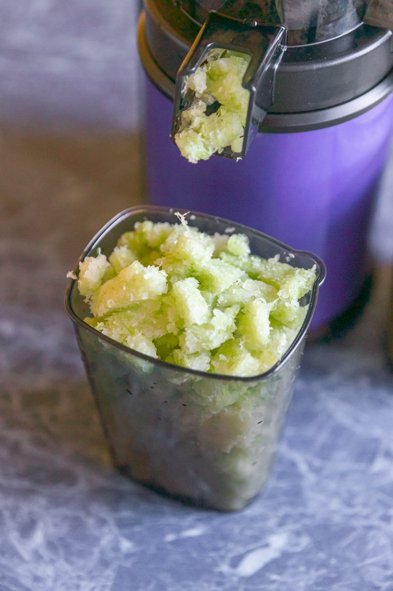 Целые овощи, затянутые шнеком, издавали громкий треск, но сам прибор работал спокойно, как будто даже не напрягаясь. Процесс шел, но не так быстро, как обработка нарезанных плодов.