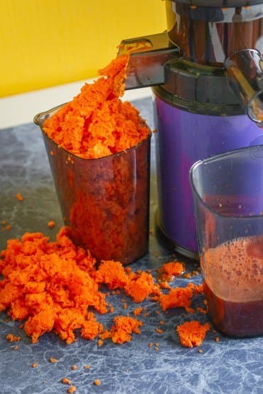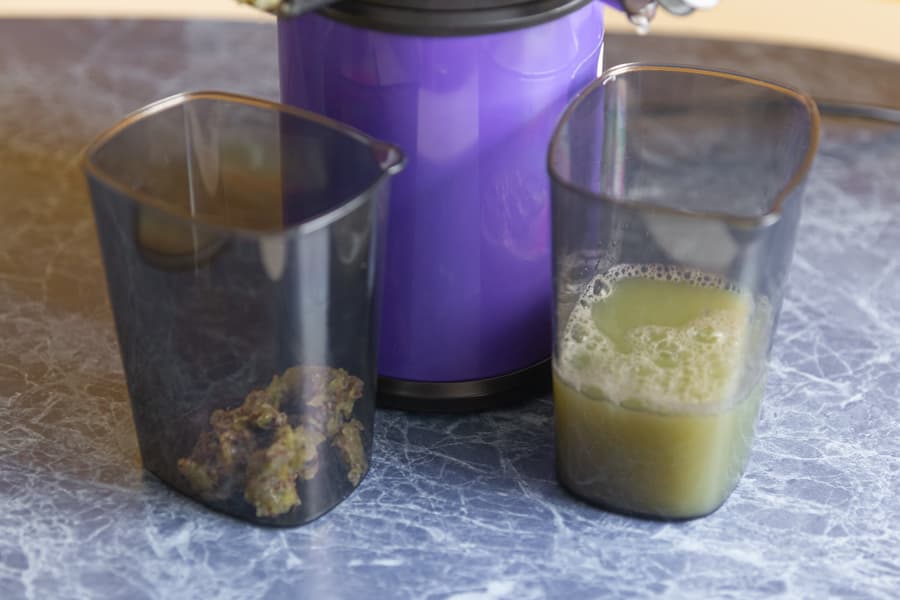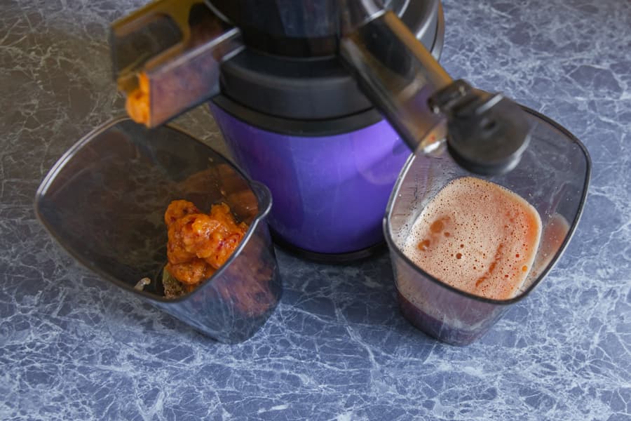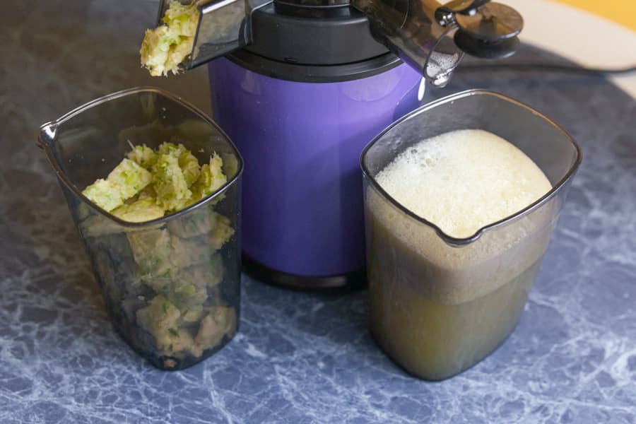 Жмых был влажным, но жидкости в контейнере мы не увидели, сок — с умеренным количеством мякоти.