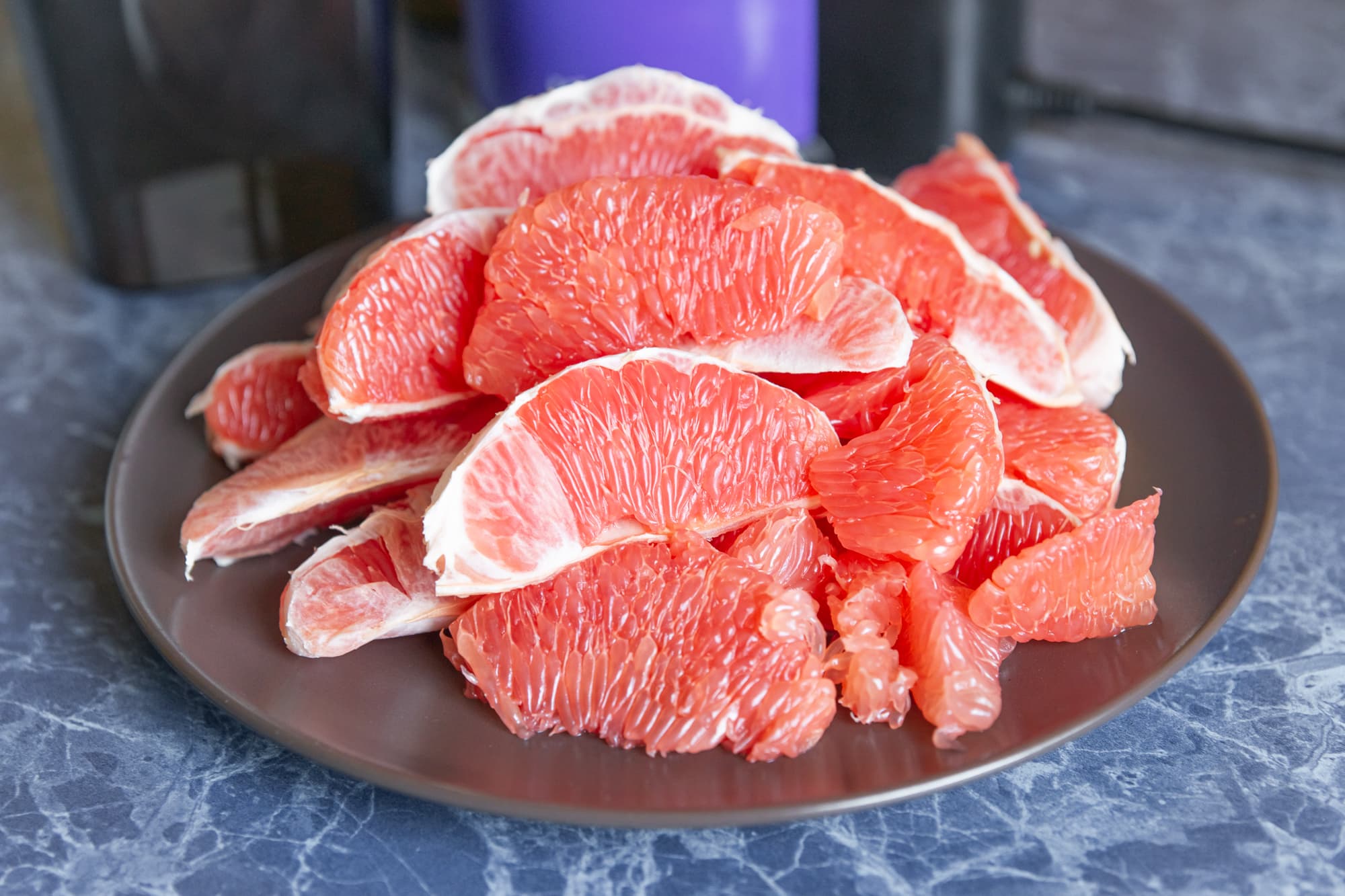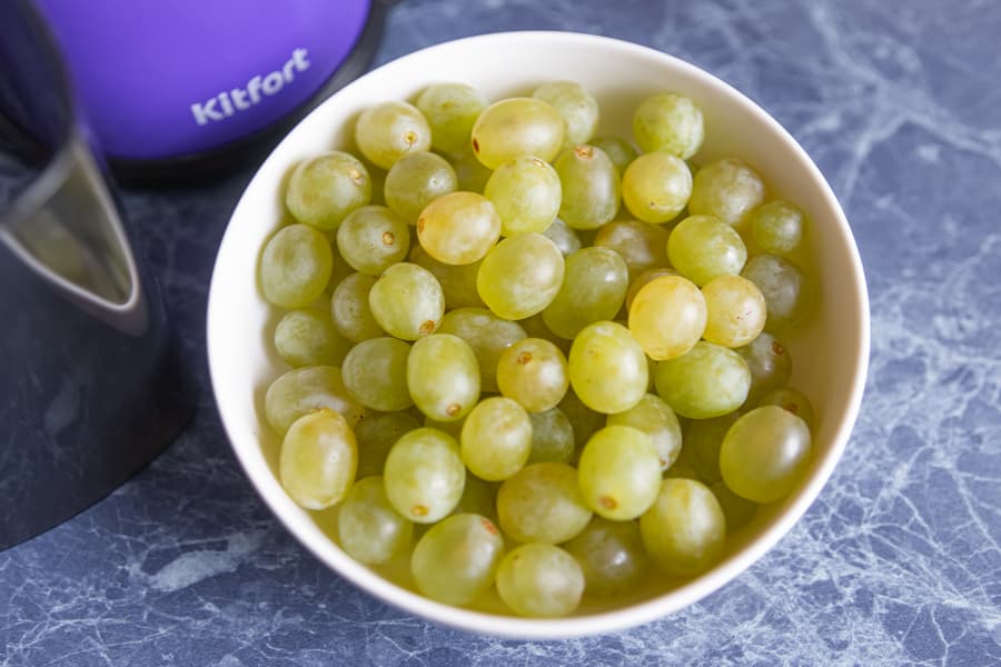 Один килограмм грейпфрута был по возможности очищен от белых пленок и разделен на дольки.