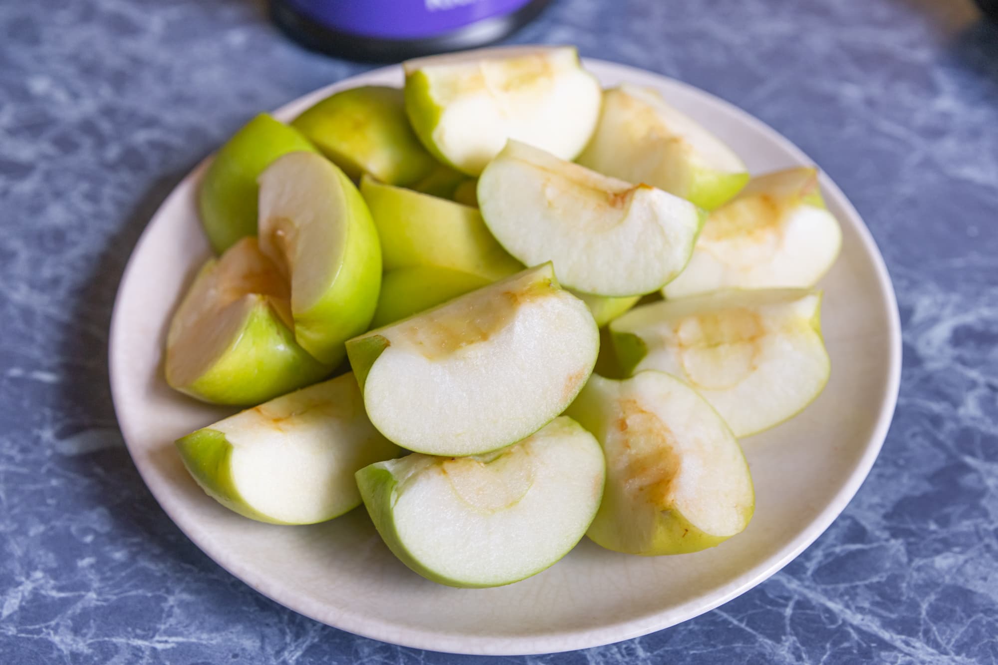 Яблоки разрезали на 4 части, сердцевину удалили, а шкурку оставили.