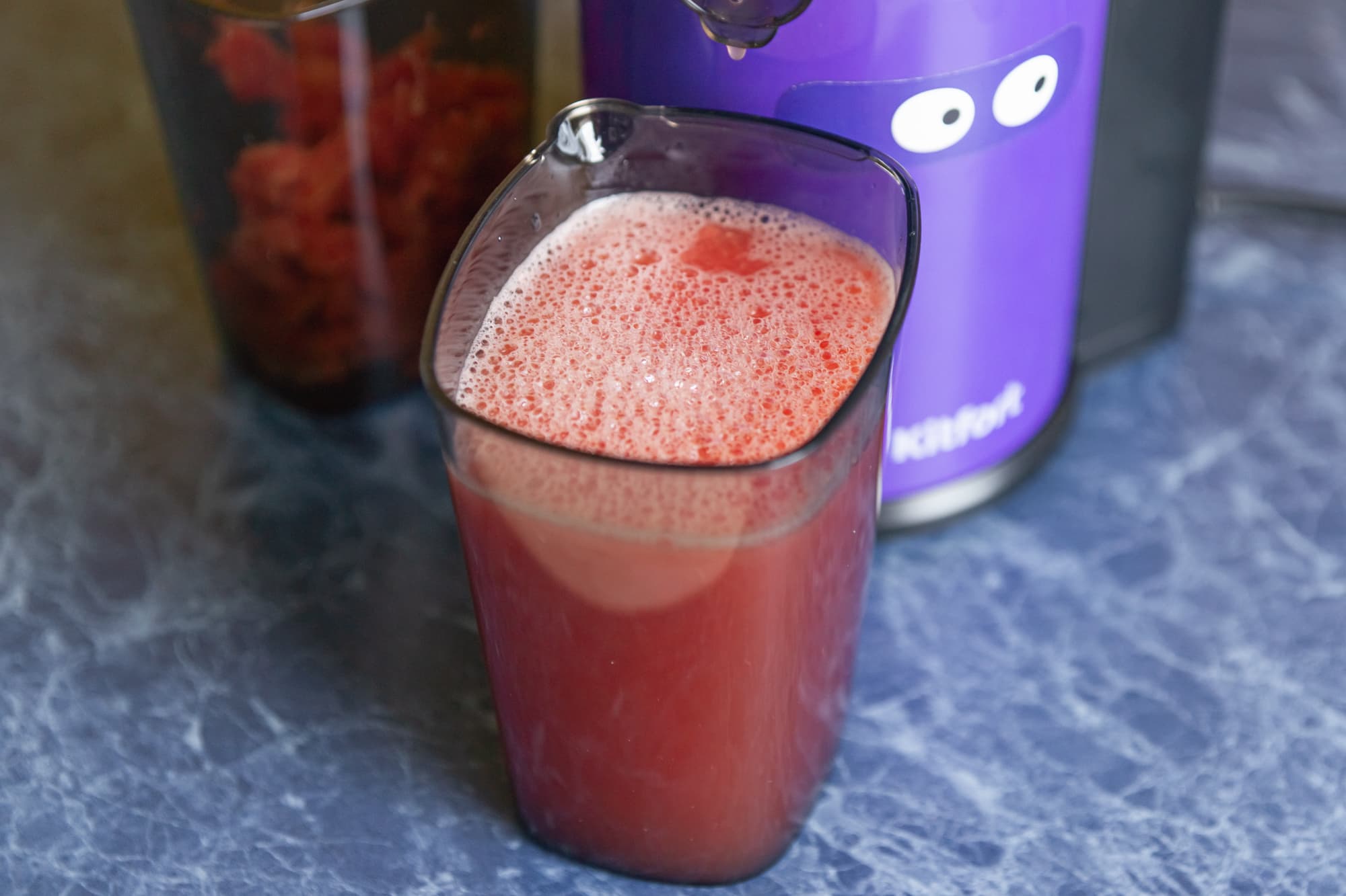 Результат: 4 минуты, 600 граммов сока (без пены).