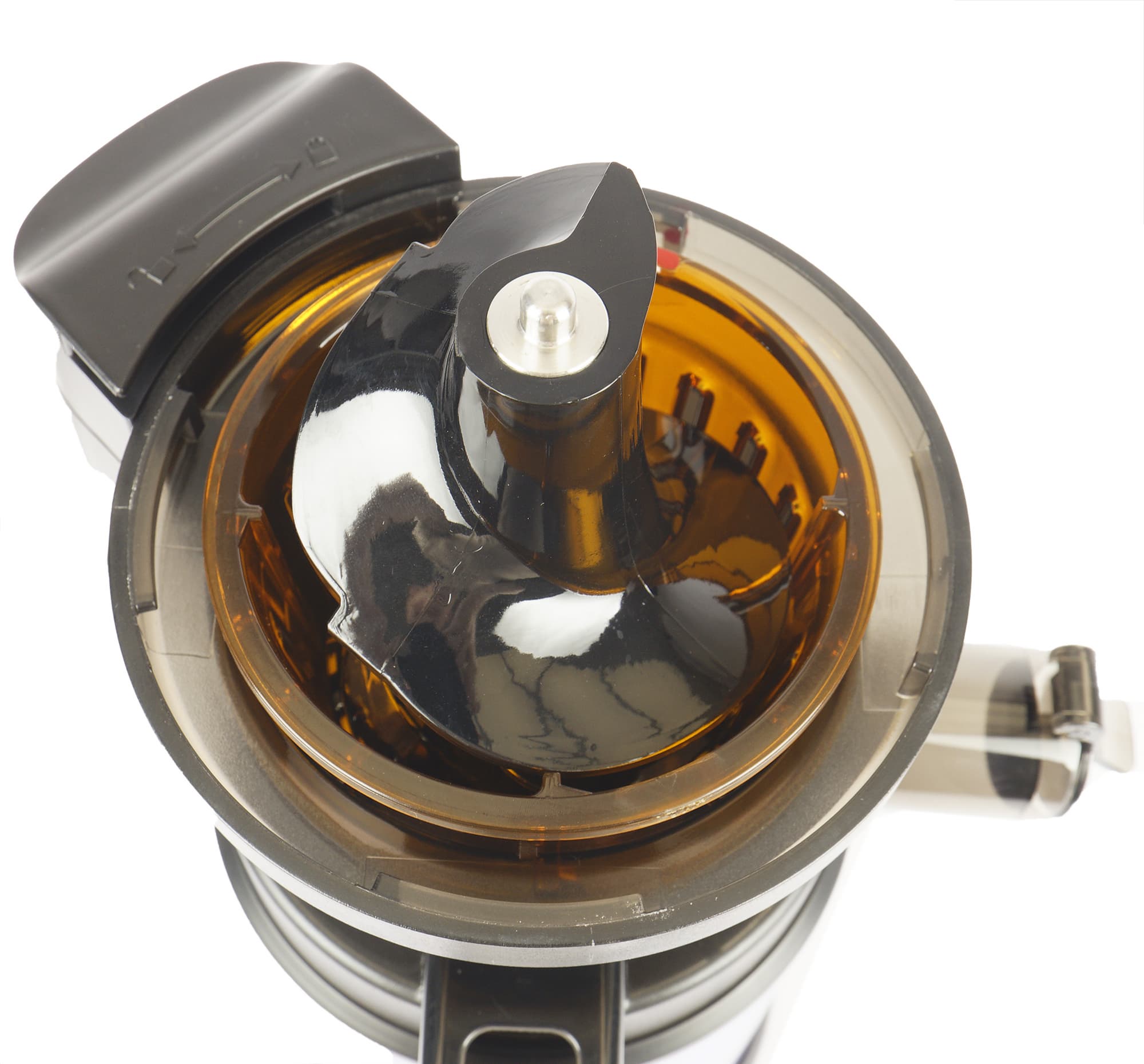 На него устанавливается чаша из прозрачного черного пластика с щелевым фильтром и шнеком.