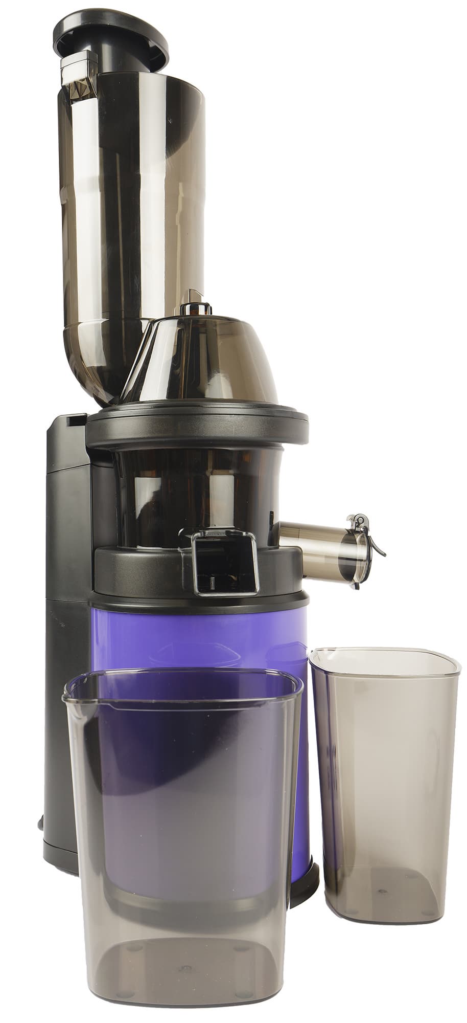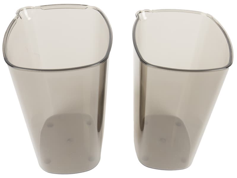 Контейнеры для жмыха и сока выполнены из того же затемненного пластика, что и загрузочная горловина. Объем контейнеров до краев составляет: 0,65 л для жмыха и 0,8 л для сока. Емкости имеют одинаковую форму, что позволяет вставлять их друг в друга, экономя место при хранении.