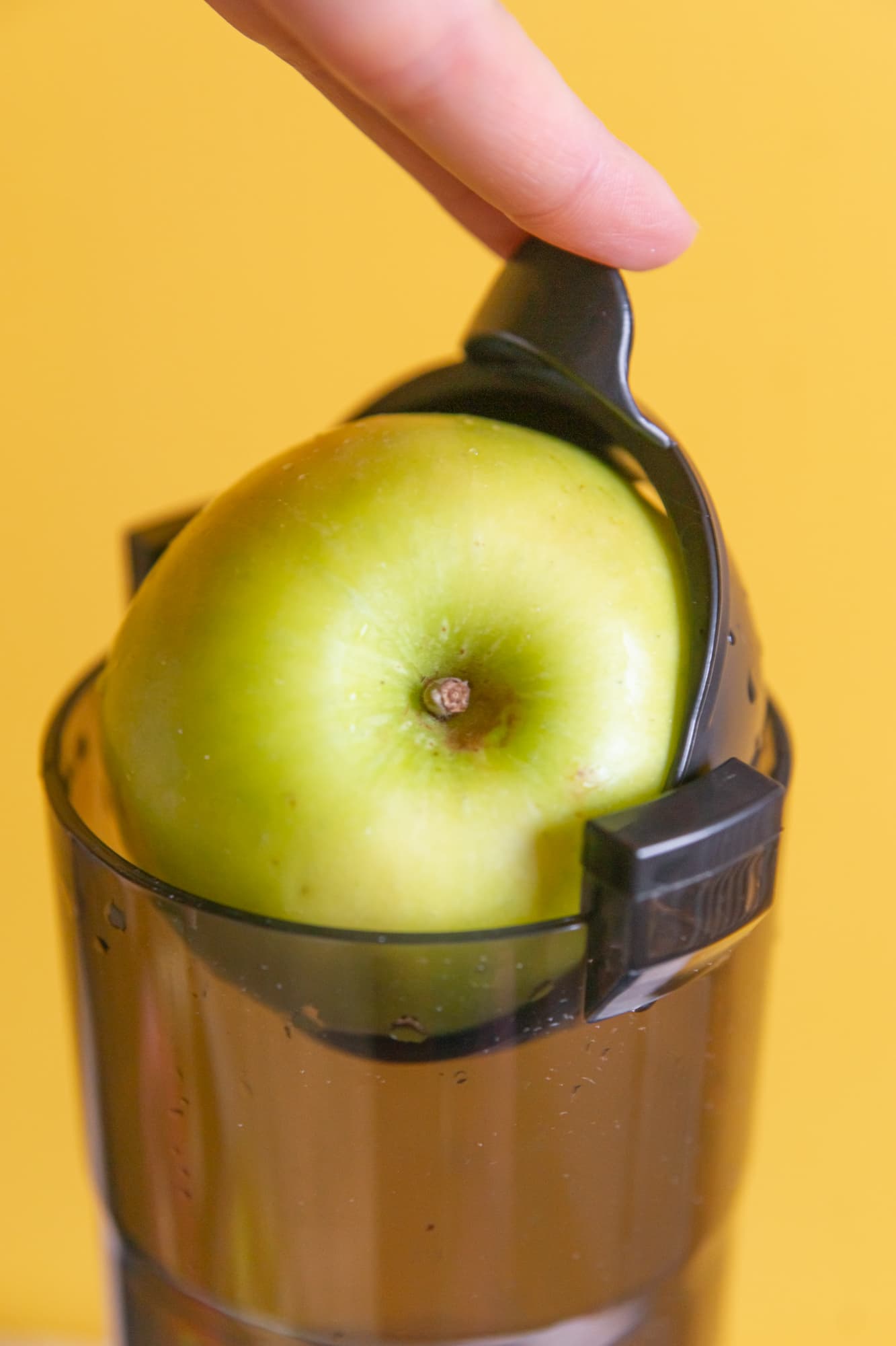 В описании Kitfort KT-1129 есть смелое заявление о том, что широкая горловина соковыжималки позволяет загружать плоды целиком, не разрезая их на части. Проверить это утверждение мы решили на яблоках сорта «Гренни Смит».