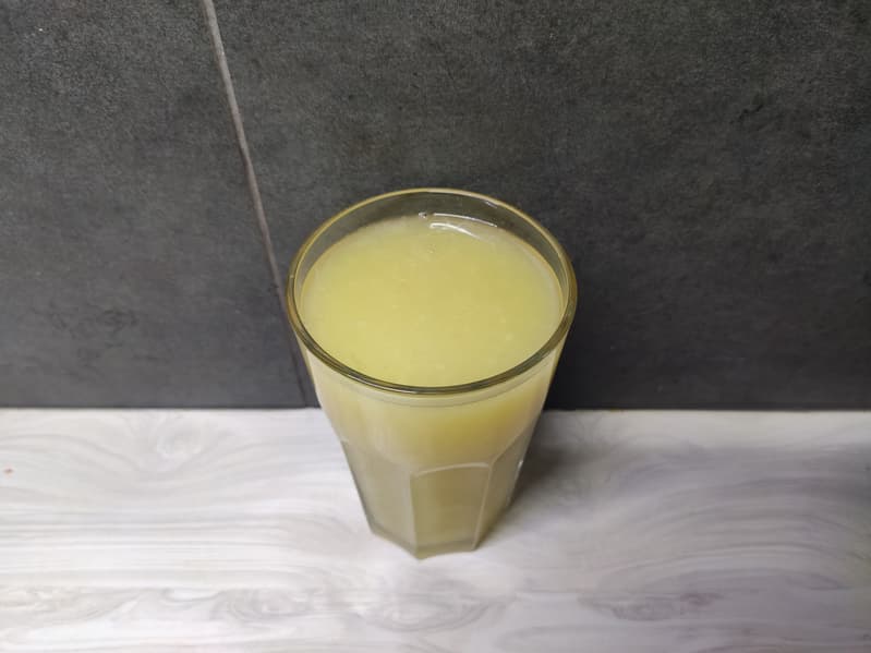 Вес получившегося сока — 501 г, или 50% выхода. Это отличный результат для лимонов. Впрочем, оно и не удивительно — на кожуре практически не осталось волокон фрукта.