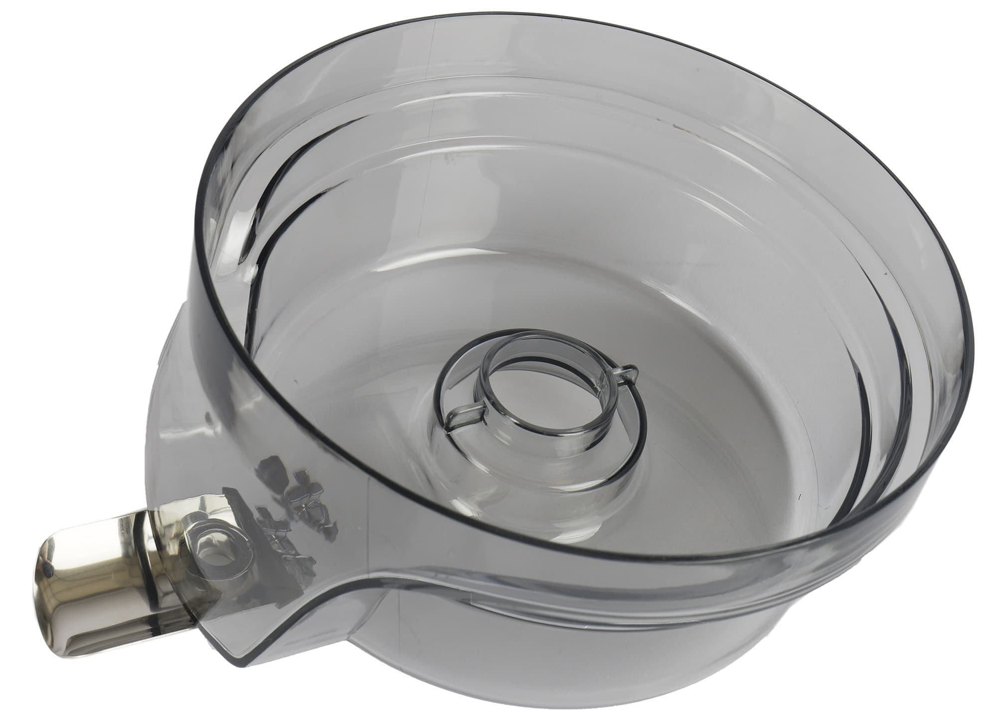 Лоток для сока, сделанный из затемненного прозрачного пластика, имеет небольшой металлический носик, выполняющий роль пробки. В верхнем положении носик блокирует подачу сока, что позволяет сменить емкость для сока, не опасаясь, что капли попадут на рабочую поверхность.
