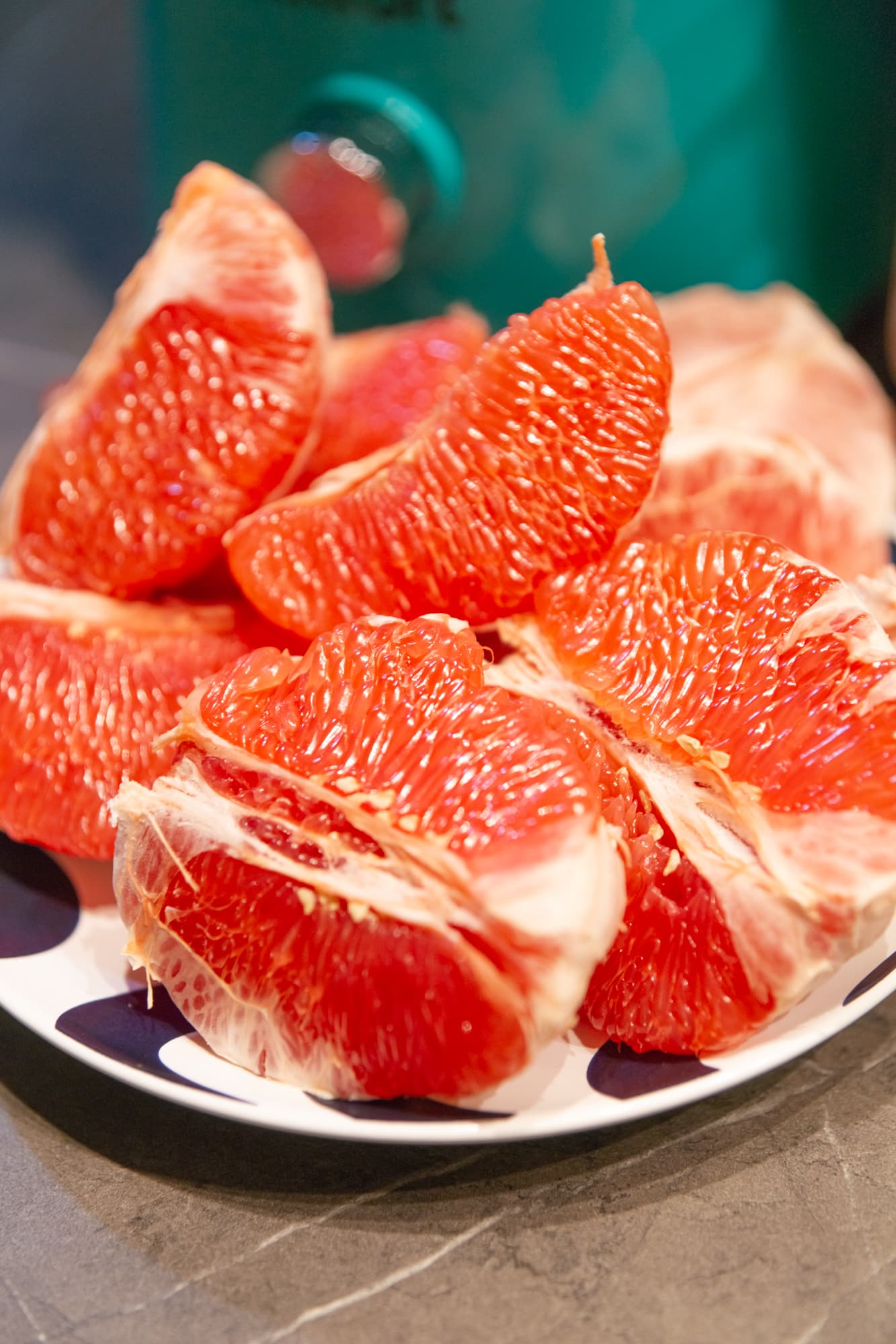 1 кг грейпфрута отжался очень быстро, за 27 секунд, но сока мы получили не так много.