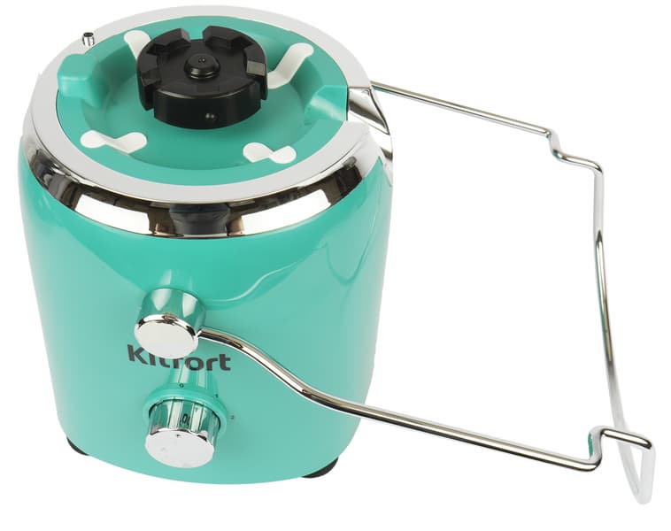 Корпус соковыжималки Kitfort KT-1144 смотрится ярко и с претензией. Такой прибор явно не затеряется в интерьере и будет обращать на себя внимание. Устройство выпускается в трех цветах: красном, желтом и зеленом. Нам достался третий вариант (KT-1144-2). Оттенок зеленого — холодный.