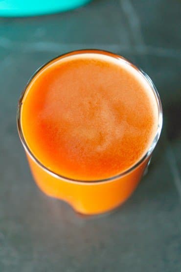 Морковь отжалась еще быстрее, за 25 секунд, но и сока без учета пены мы получили меньше всего.