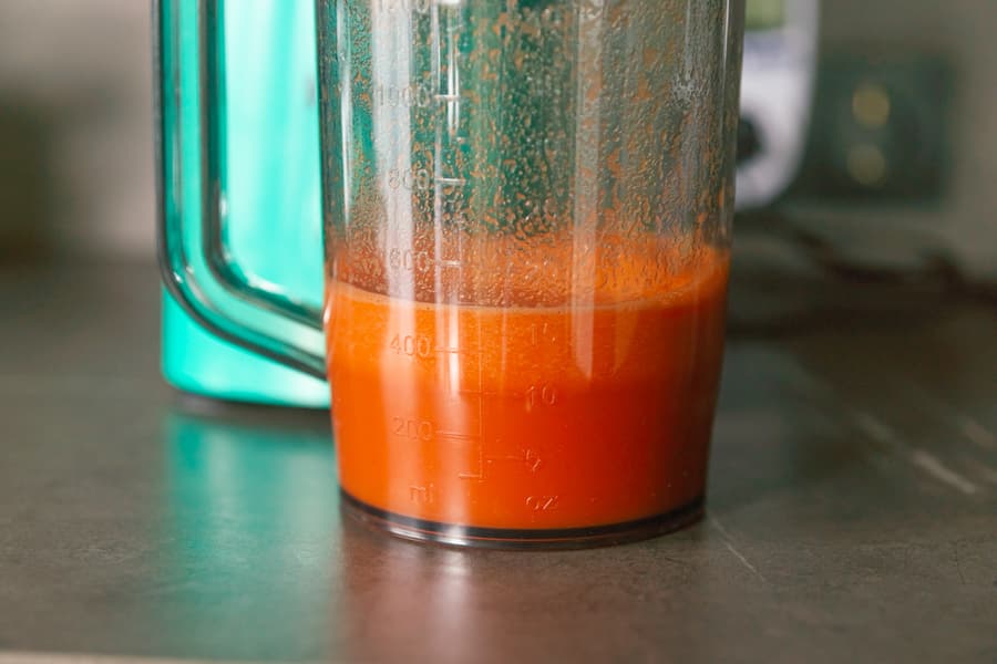 Соковыжималка легко справилась с килограммом корнеплодов и превратила их в плотный оранжевый сок со средним количеством пены.
