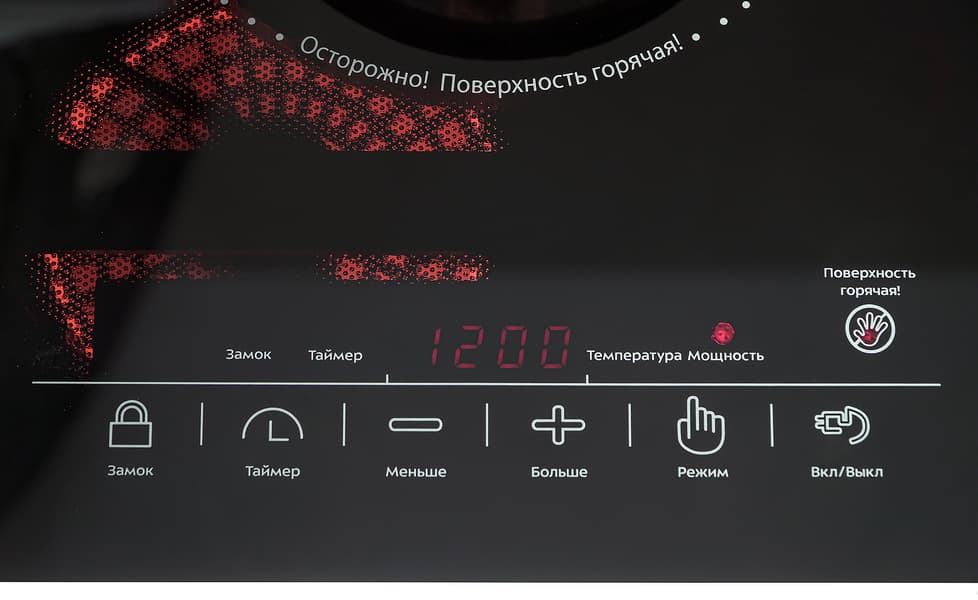 В отличие от индукционки, при изменении режима нагрева состояние продукта меняется не мгновенно, но достаточно быстро. Также следует помнить, что для полного охлаждения области нагрева требуется некоторое время. Поэтому производитель рекомендует по окончании приготовления пищи передвинуть или снять посуду с плитки.