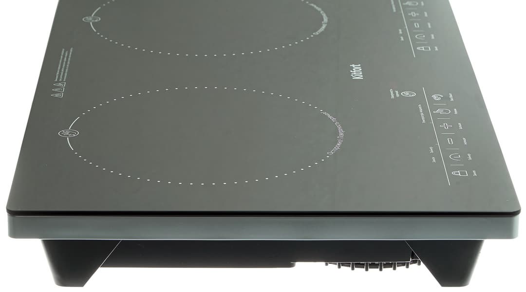Компактной Kitfort KT-131 не назвать: ее ширина равна стандартной ширине встраиваемой или отдельно стоящей плиты, а вот глубина меньше. Присмотримся к прибору внимательнее.