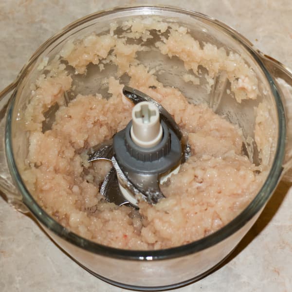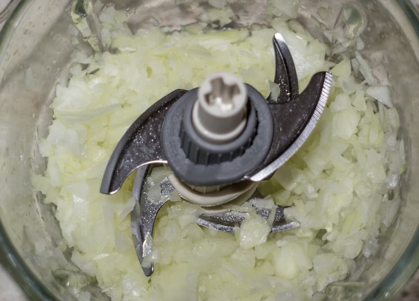 Сначала измельчили одну луковицу весом в 170 г. Работа заняла буквально секунды — через пять импульсов продукт измельчен на мелкие фрагменты, но не превращен в жидкое луковое пюре. Именно то, что нужно для котлет и начинки для пельменей или мантов.