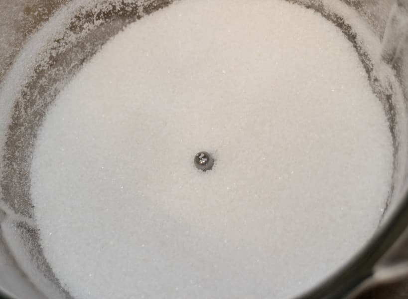 Измельчали импульсами в течение одной минуты. Крупицы стали мельче, однако сахар так и не смог достичь состояния сахарной пудры.