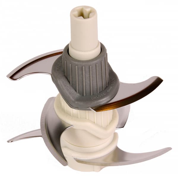 Блок лезвий состоит из трех частей. Каждая из них оснащена двумя серповидными режущими лезвиями. Две верхних пары надеваются на ось нижних ножей и легко фиксируются на ней поворотом по часовой стрелке. Лезвия очень острые, поэтому следует соблюдать определенную осторожность при сборке и разборке детали.
