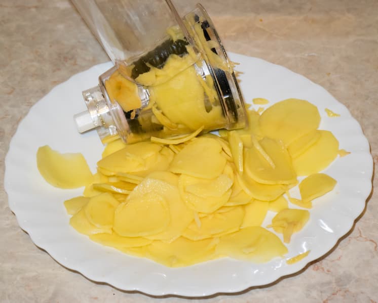 Клубни среднего размера свободно помещались в загрузочное отверстие. Три клубня были нарезаны чрезвычайно быстро. Большинство ломтиков равного размера и толщины.